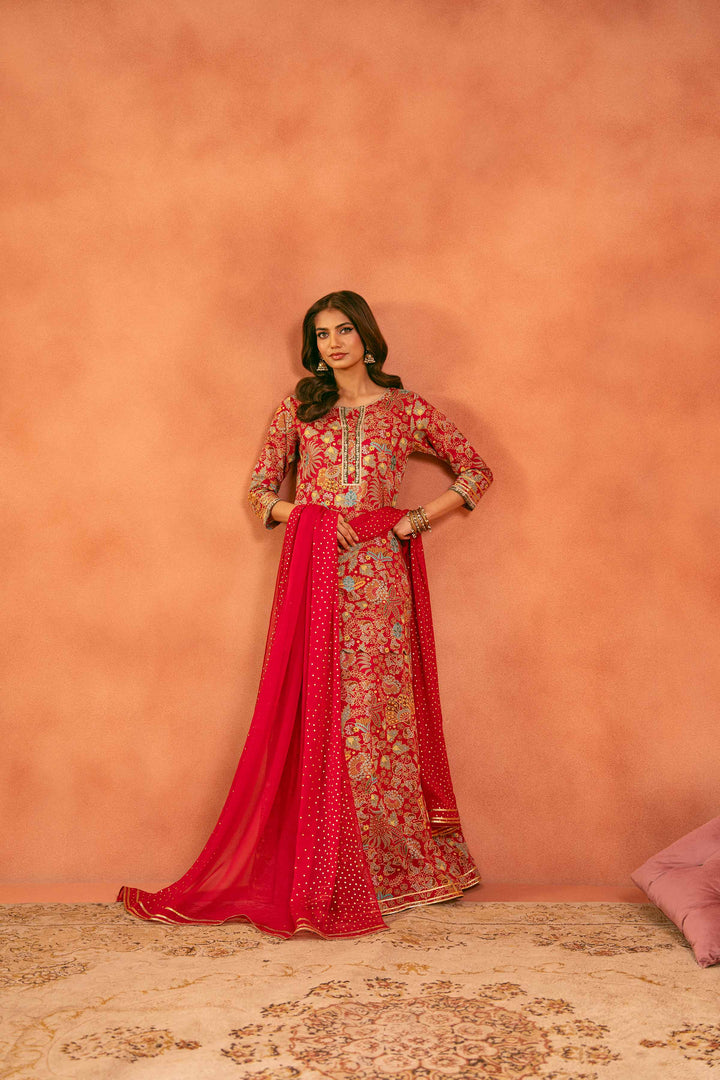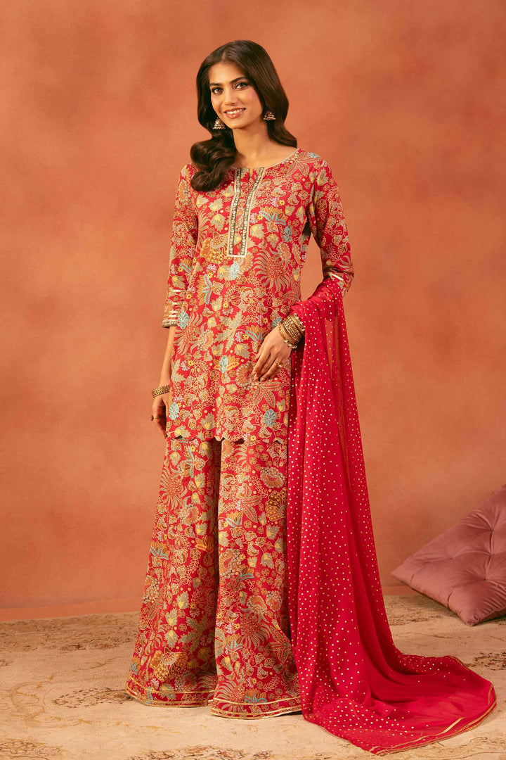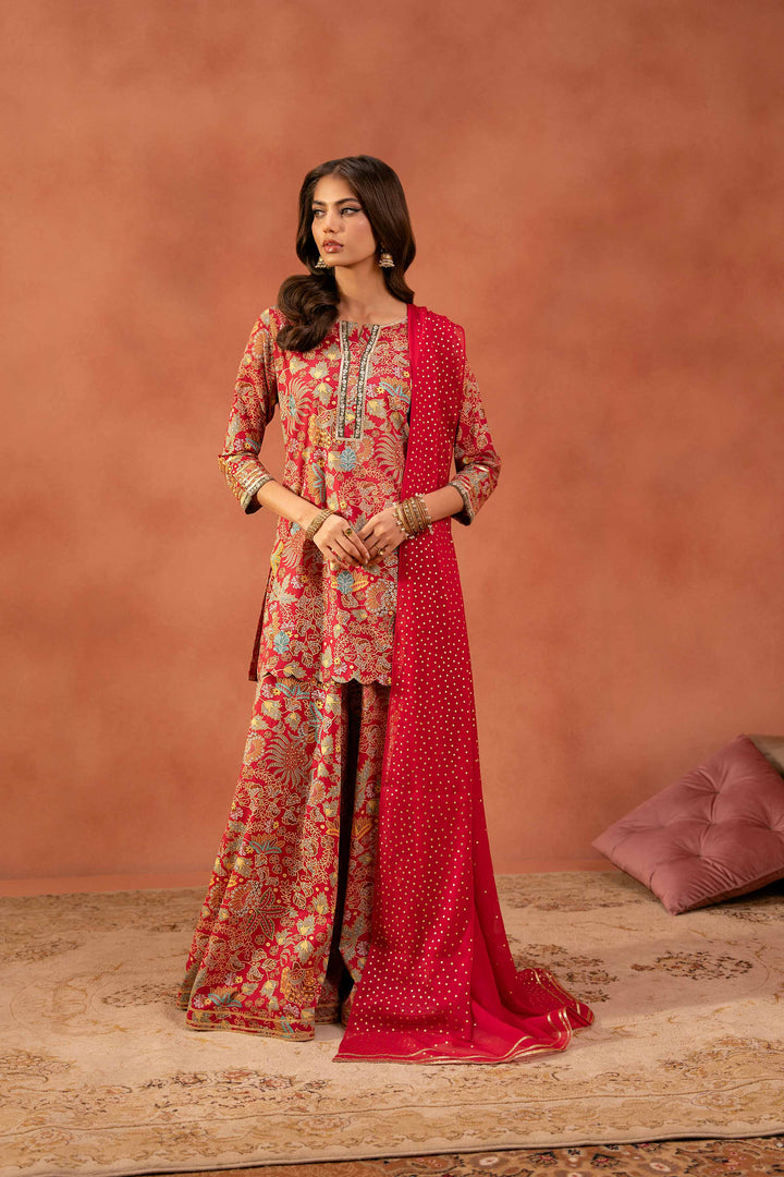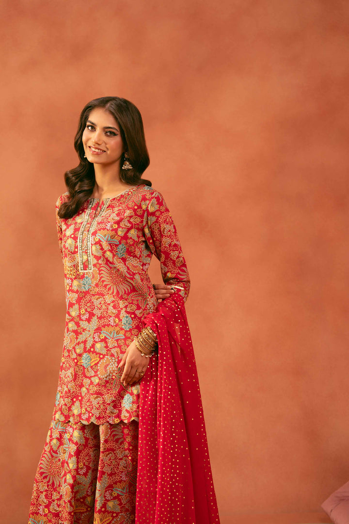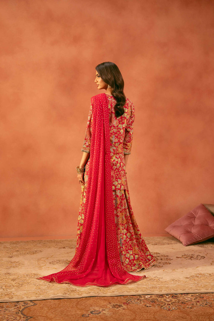 Printed Embroidered Shirt With Dupatta & Sharara