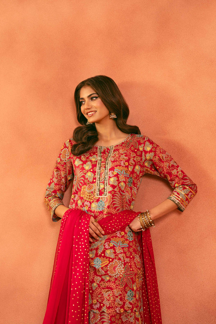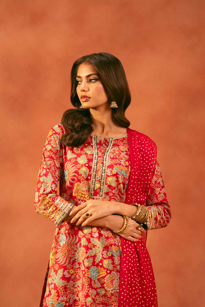 3 Piece - Printed Embroidered Suit - KFE25-166