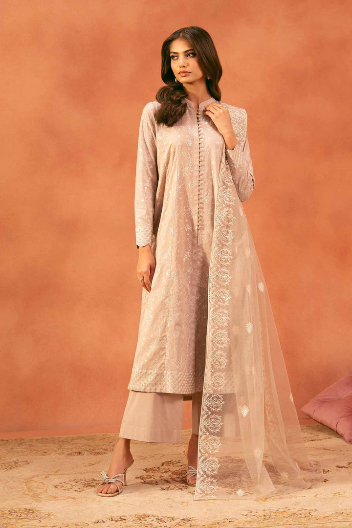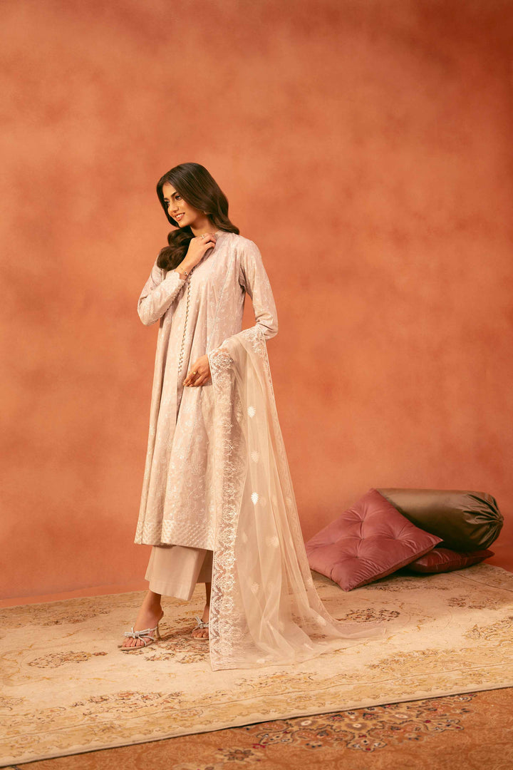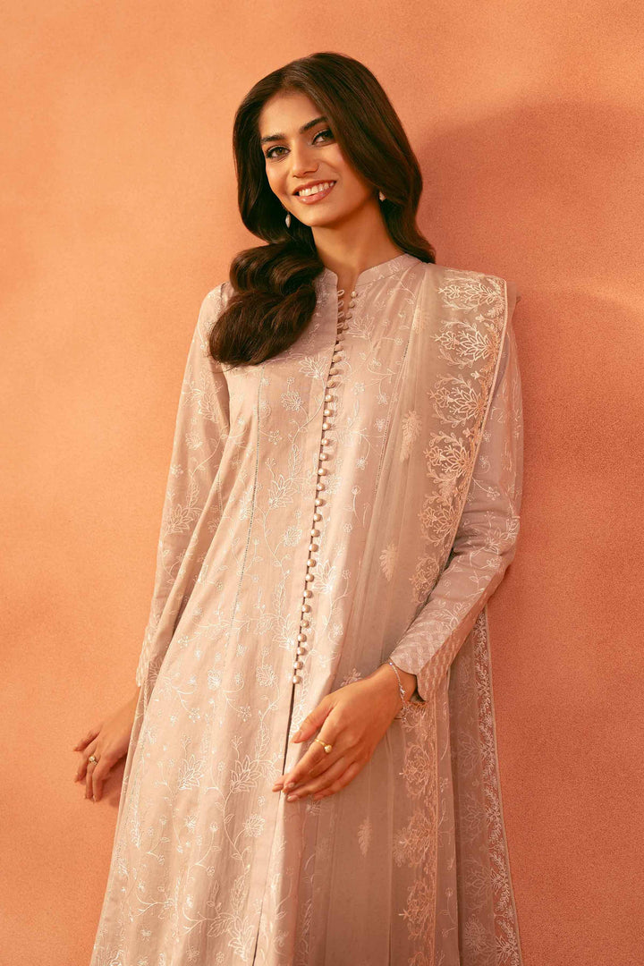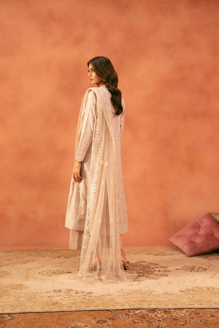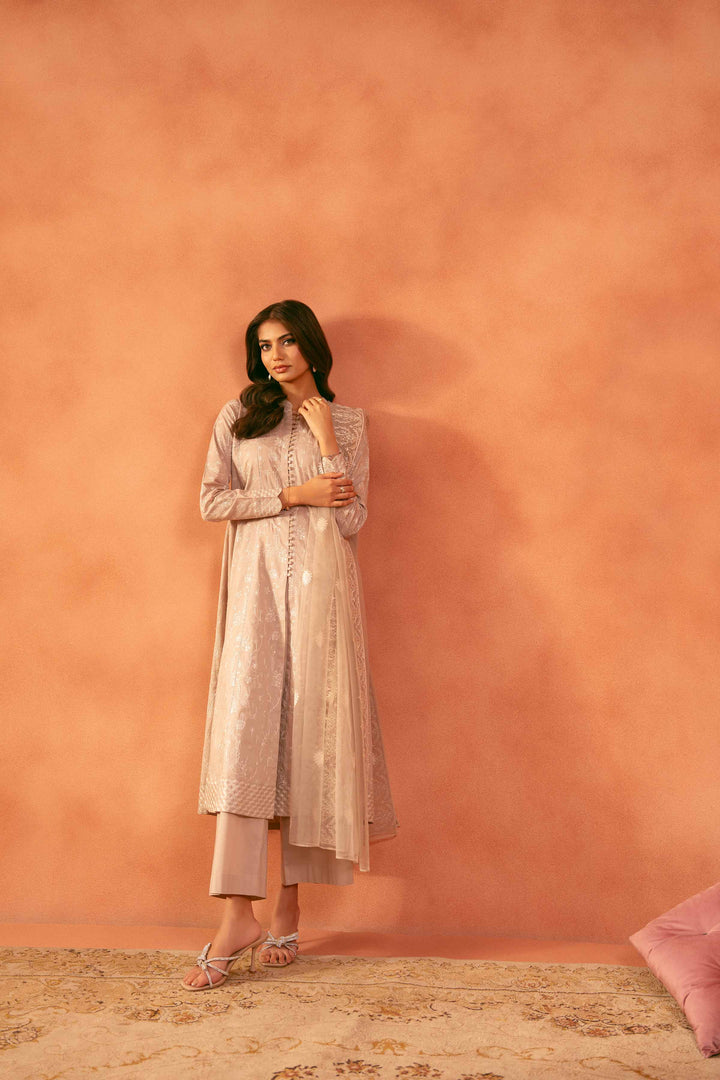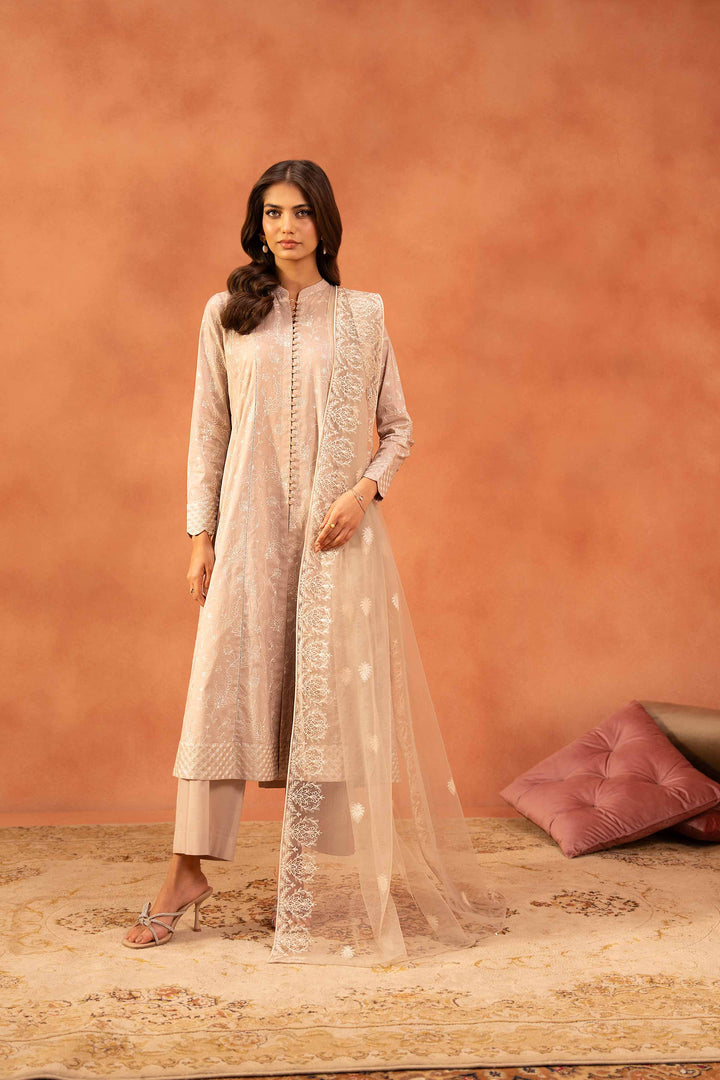 Make a truly elegant statement with this embroidered three-piece suit from the latest Luxury Pret Summer Collection, a perfect blend of classic craftsmanship and modern sophistication.