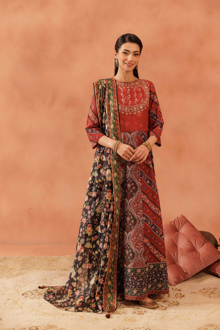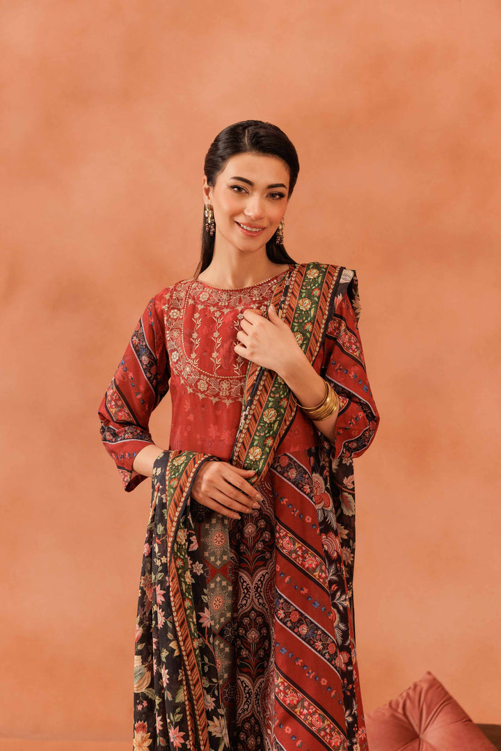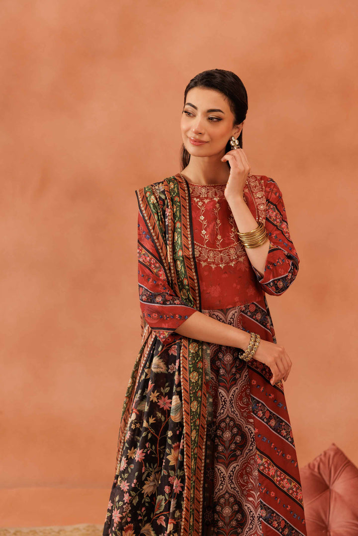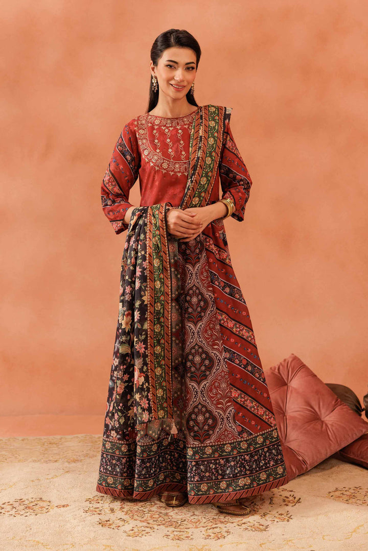 Make a truly elegant statement with this printed embroidered two-piece suit from the latest Luxury Pret Winter Collection, combining vibrant prints with intricate embroidery for a chic Winter look.