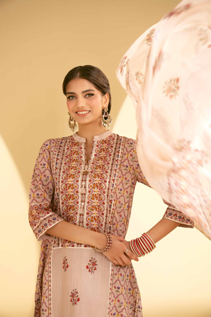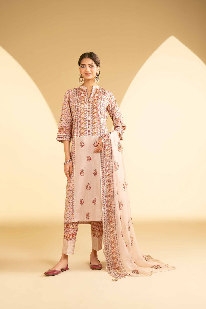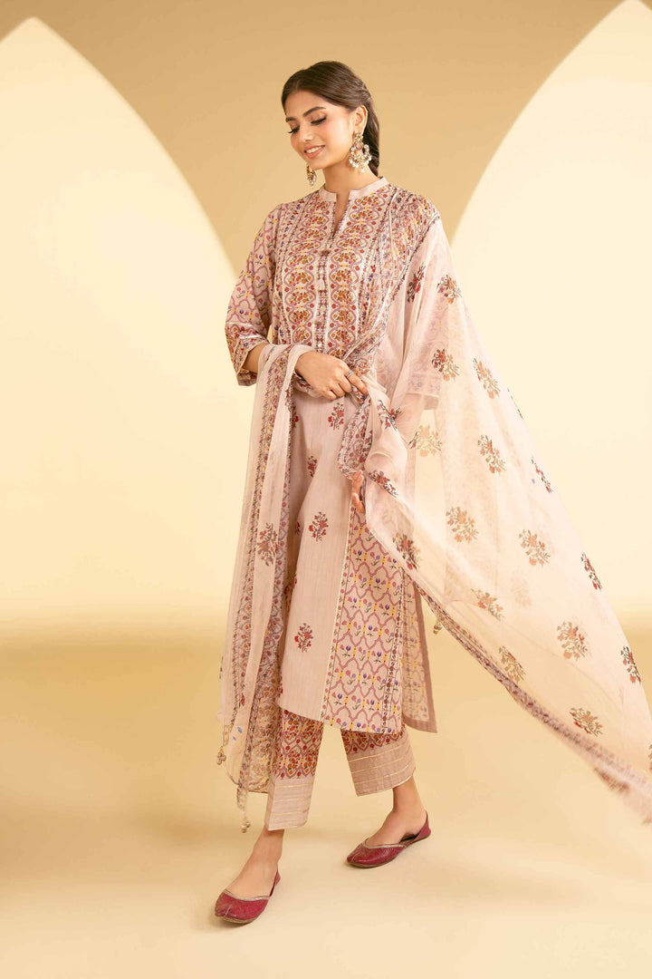 Delicate your style in this printed three-piece suit from the latest luxury pret summer collection.