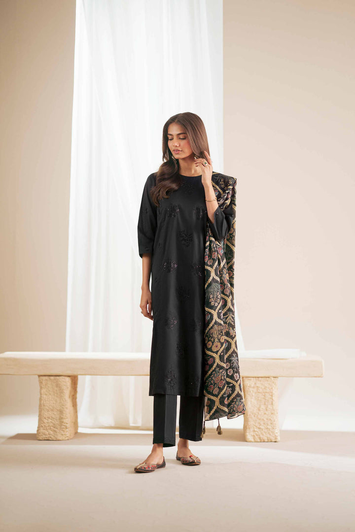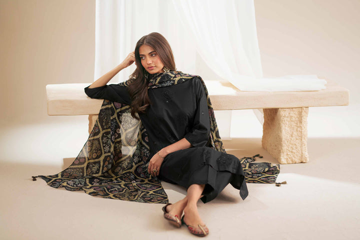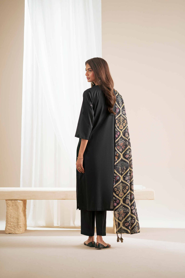 Make your day marvelous with this embroidered three-piece suit from the latest Luxury Pret Winter Collection, blending intricate embroidery with timeless sophistication for an elegant Winter look.