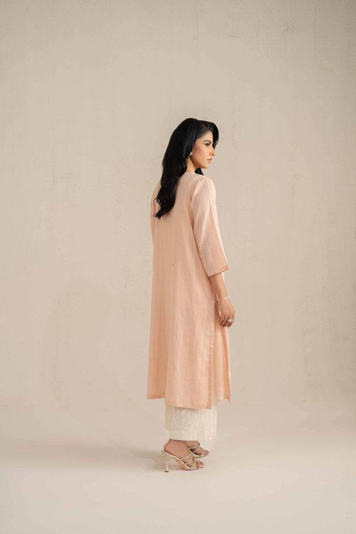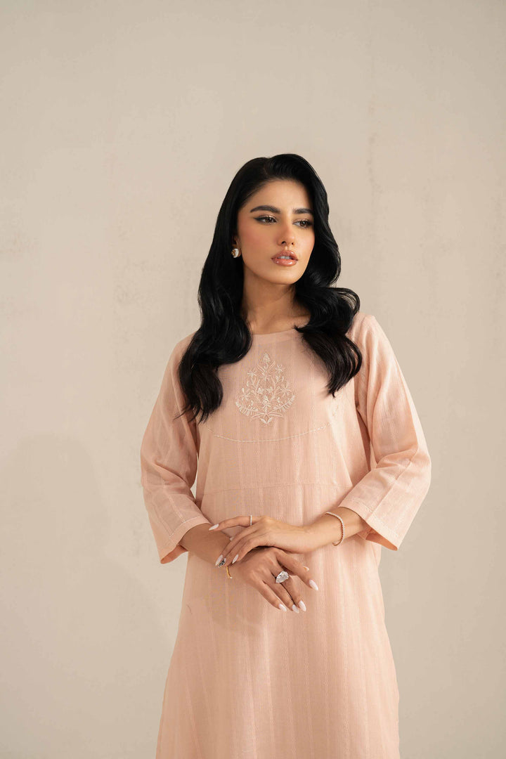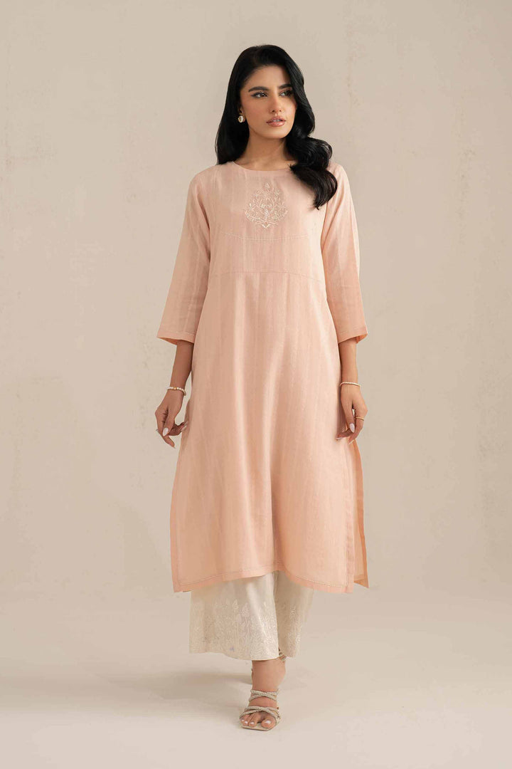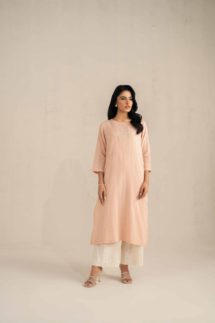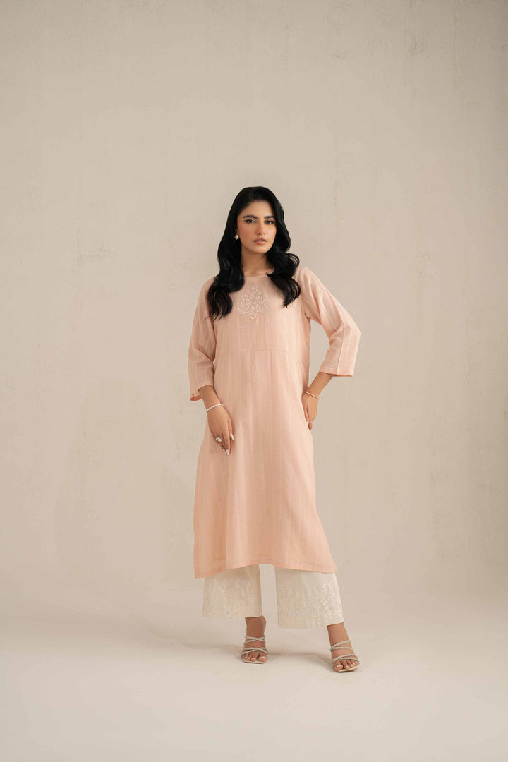 Round Neckline, Top Stitches Detail At Sleeves & Hem, Embroidered Shirt