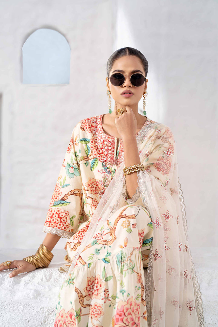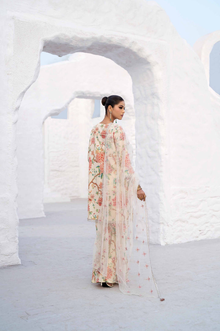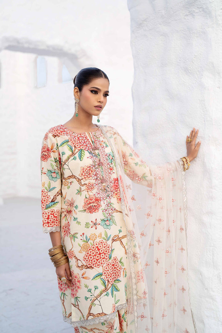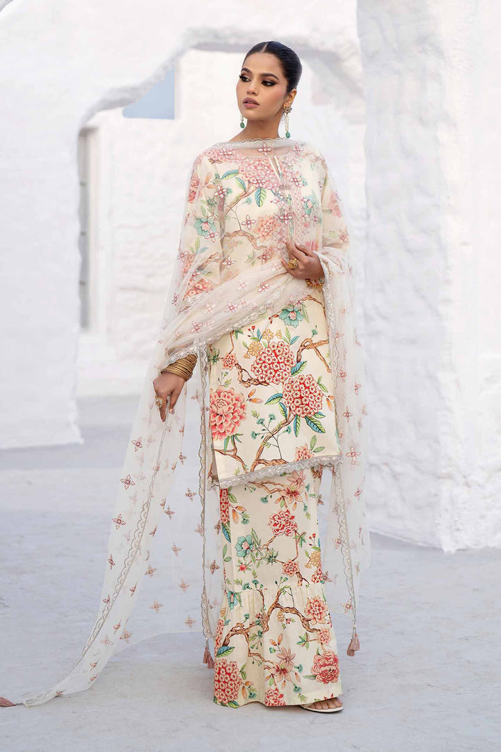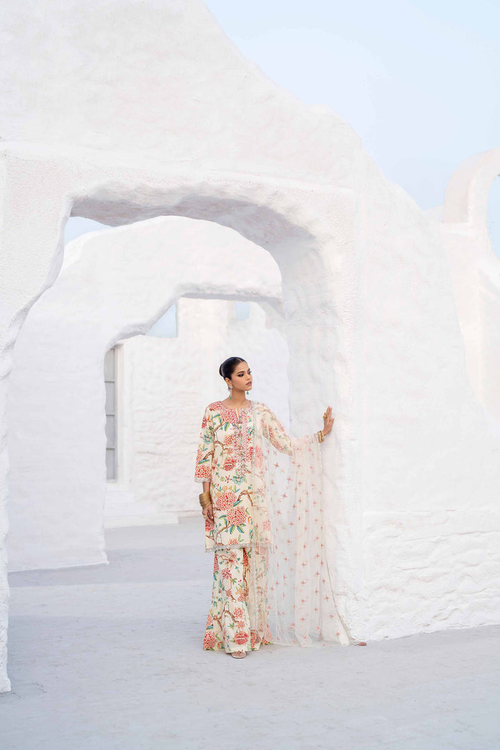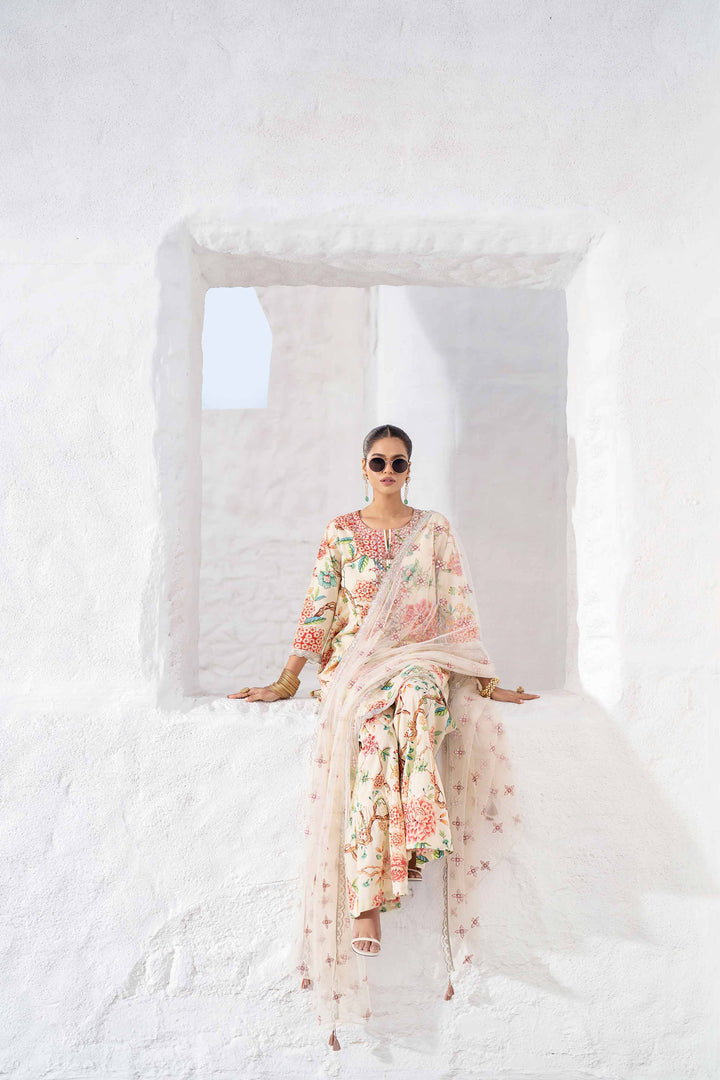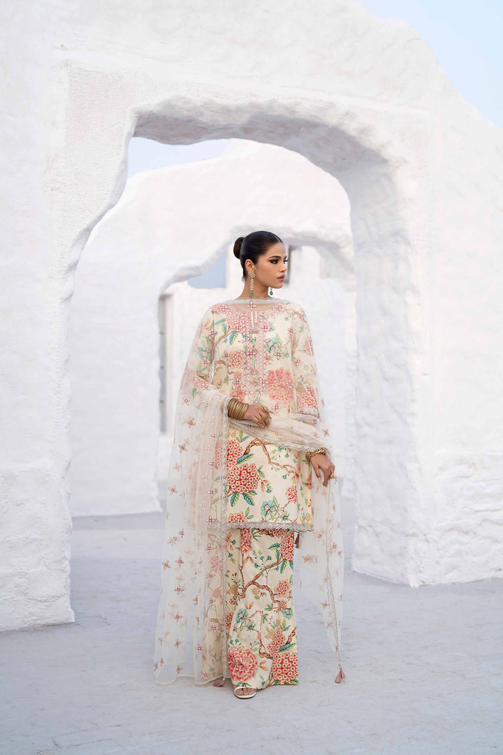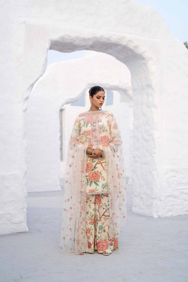 Make you look flawless on your special days by wearing this printed embroidered three-piece suit from the latest luxury pret summer collection.