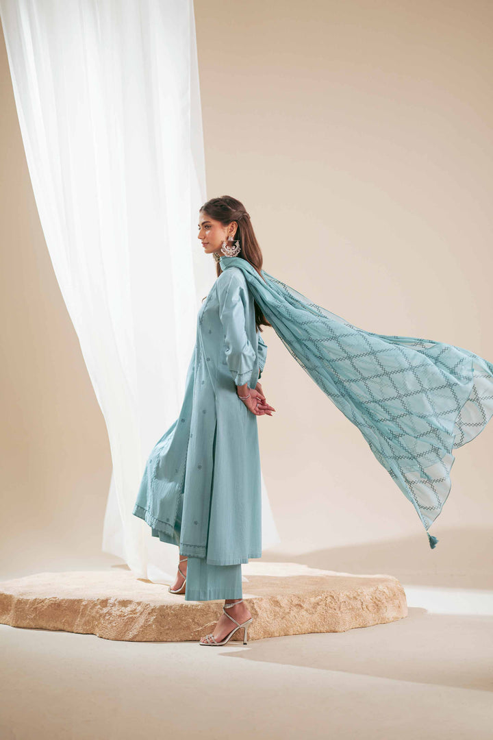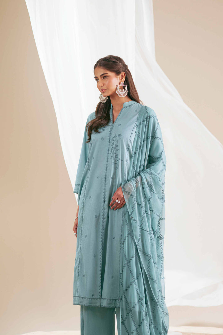 Make your day marvelous with this embroidered three-piece suit from the latest Luxury Pret Winter Collection, featuring exquisite embroidery and timeless elegance for a chic Winter look.