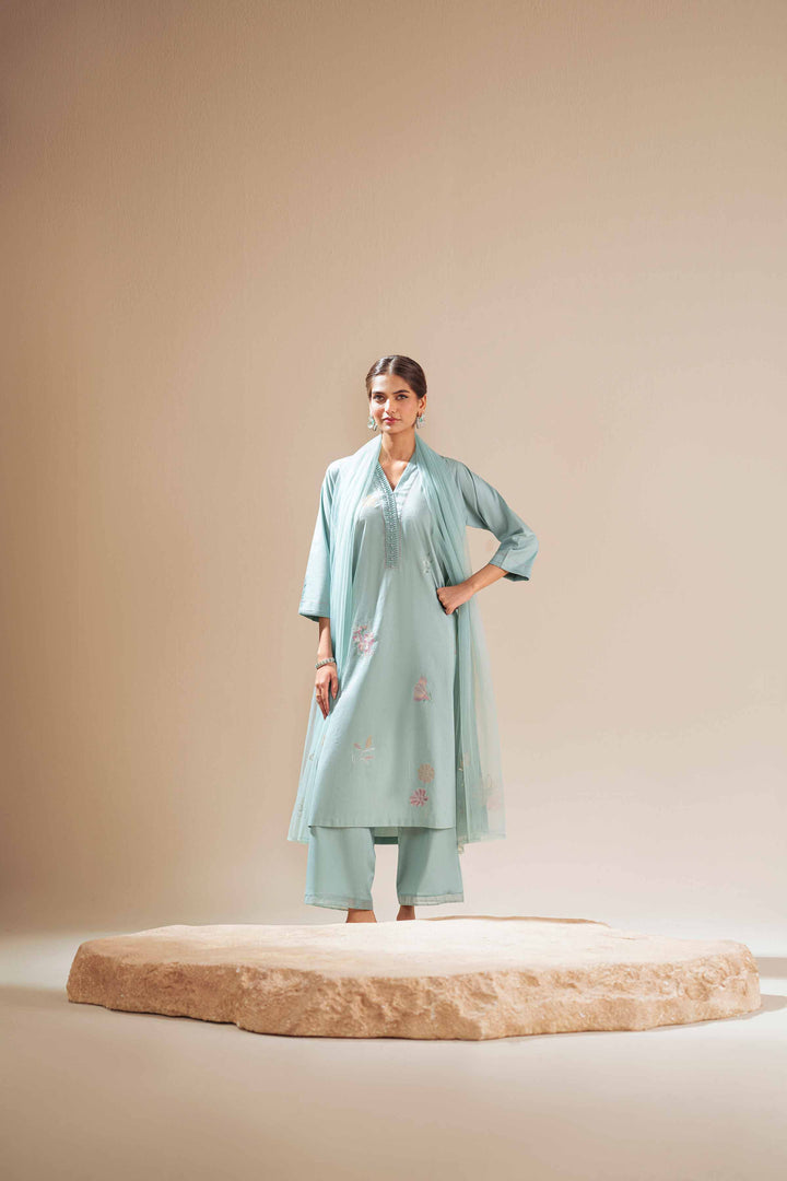 Embroidered Kurta With Dupatta & Culottes