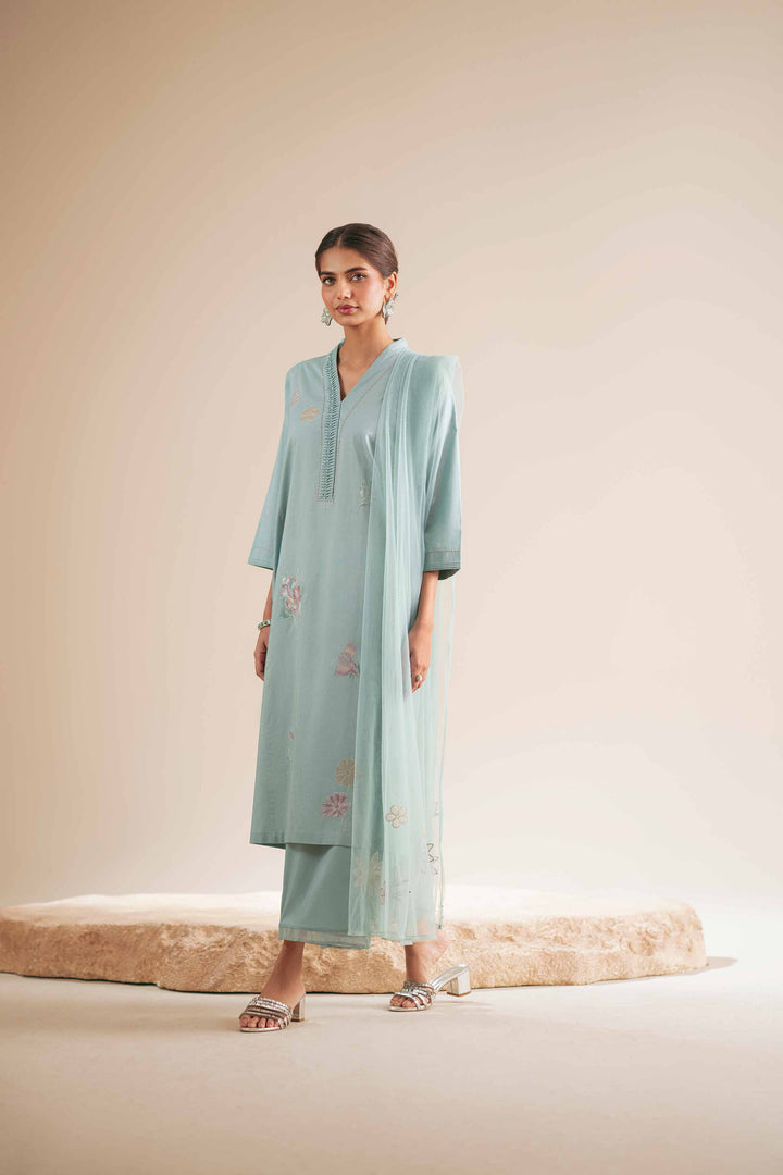 Make your day marvelous by wearing this embroidered three-piece suit from the latest luxury pret summer collection.
