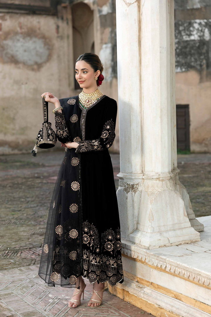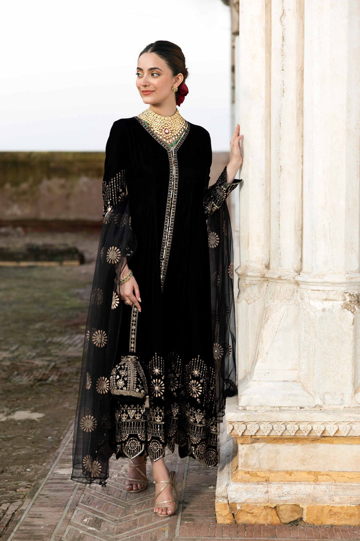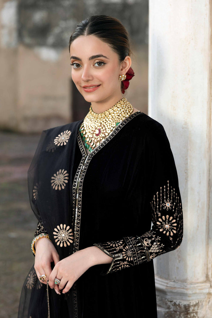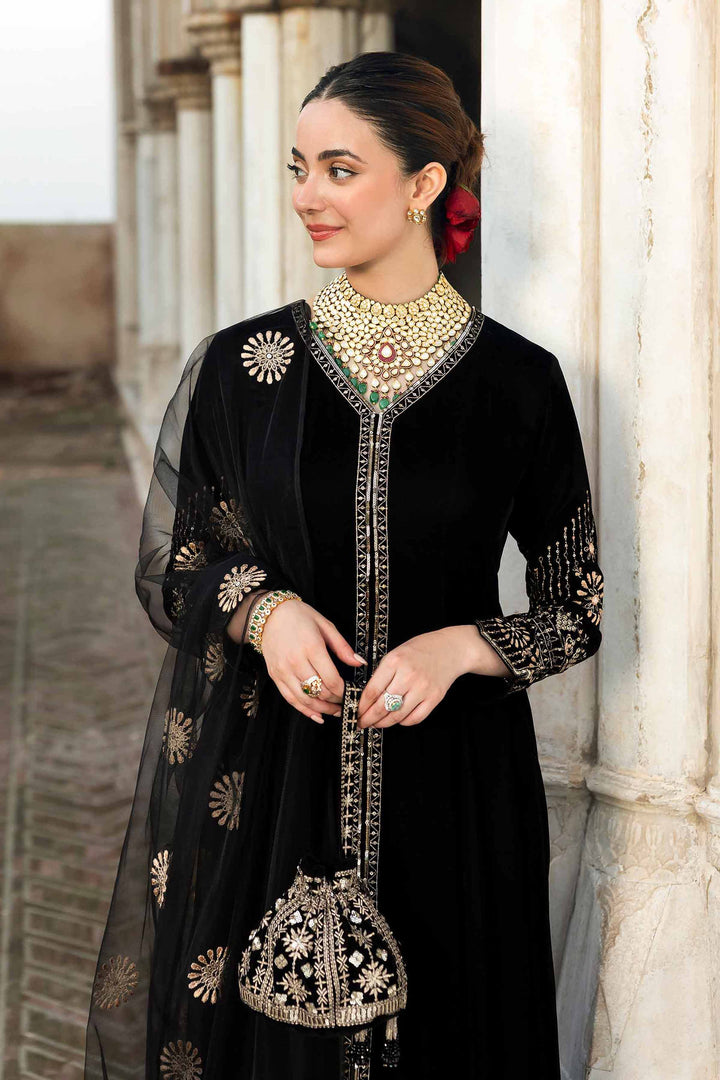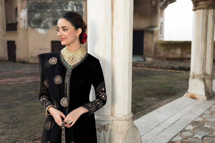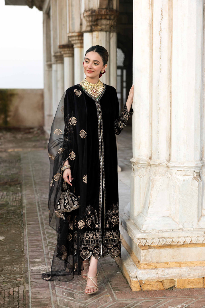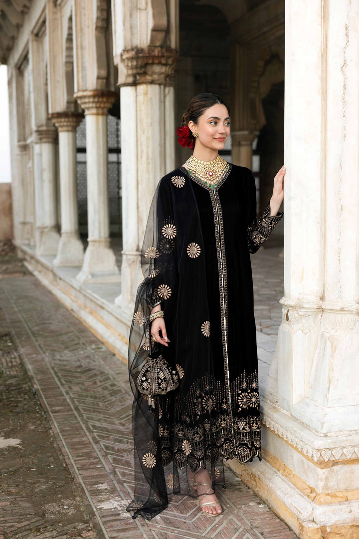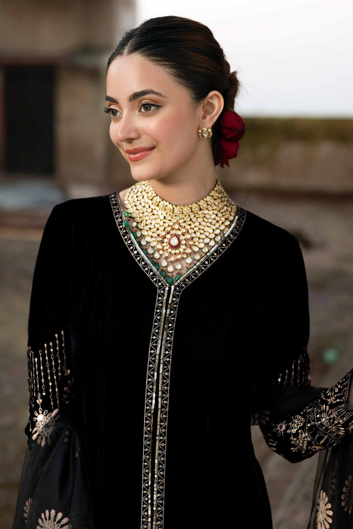 Stand out this Winter in this embroidered three-piece suit from the latest Luxury Pret Winter Collection, featuring intricate embroidery and refined elegance.