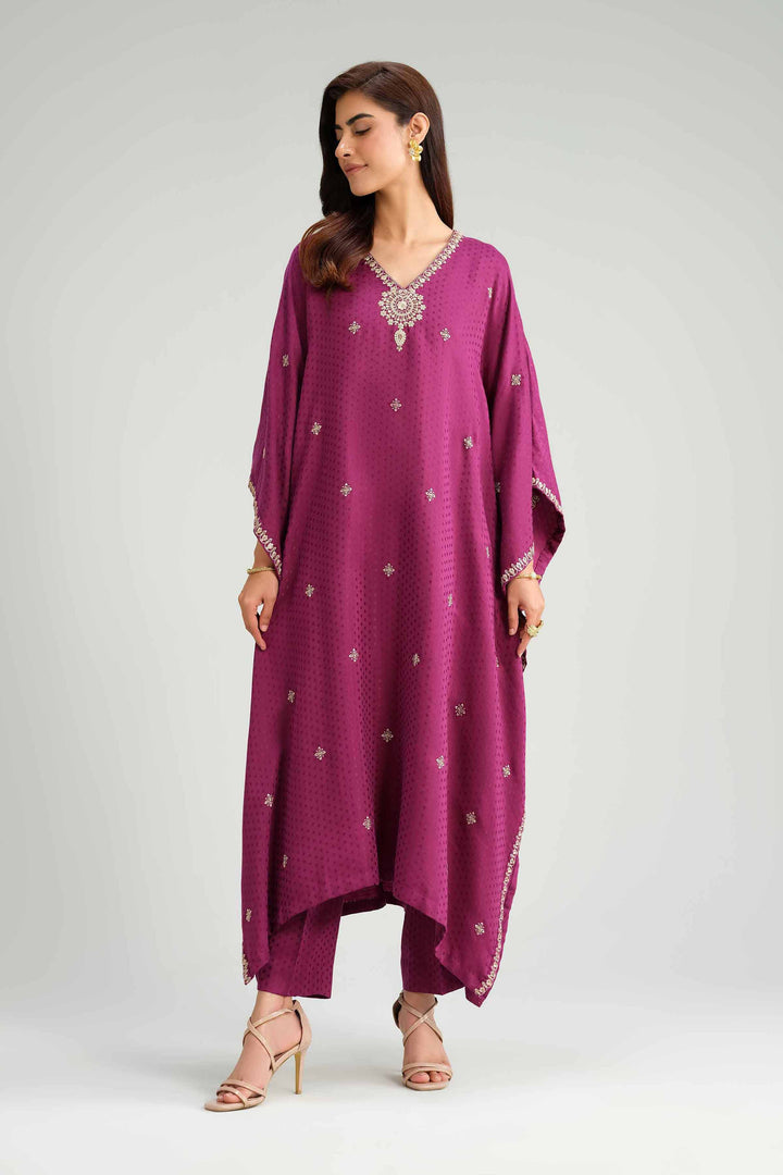 Elevate your Winter wardrobe with this embroidered two-piece suit from the latest Luxury Pret Winter Collection, blending refined embroidery with chic style.