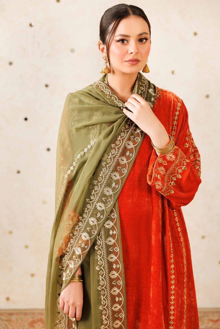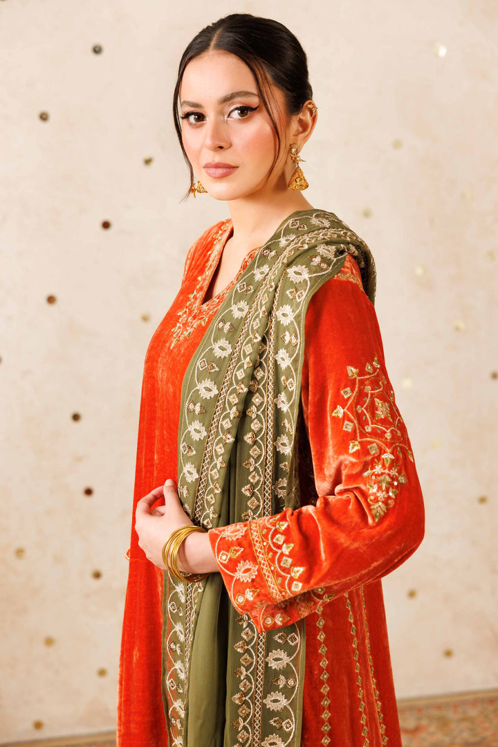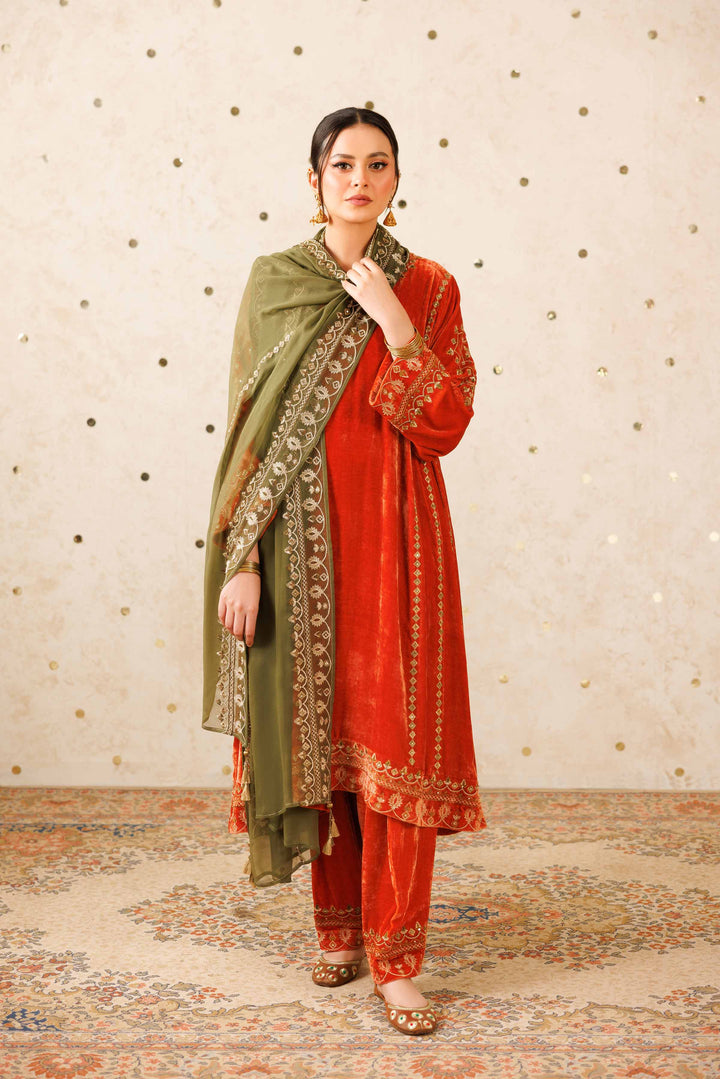 Stand out this Winter in this embroidered three-piece suit from the latest Luxury Pret Winter Collection, featuring intricate craftsmanship and grace.