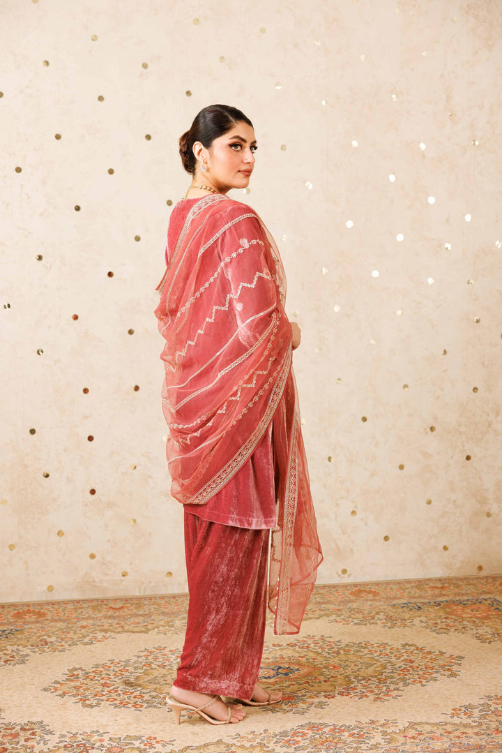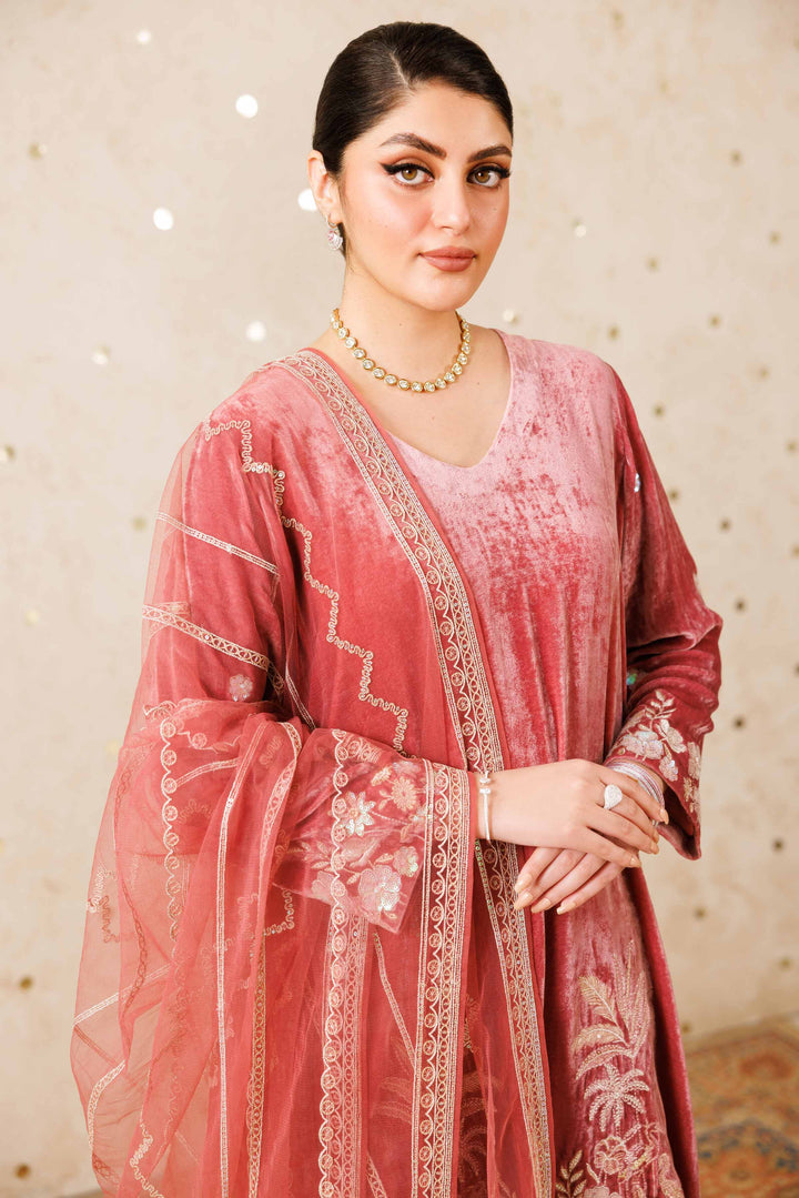 Create an aura of refined elegance in this embroidered three-piece suit from the latest Luxury Pret Winter Collection, blending detailed artistry with a graceful seasonal charm.