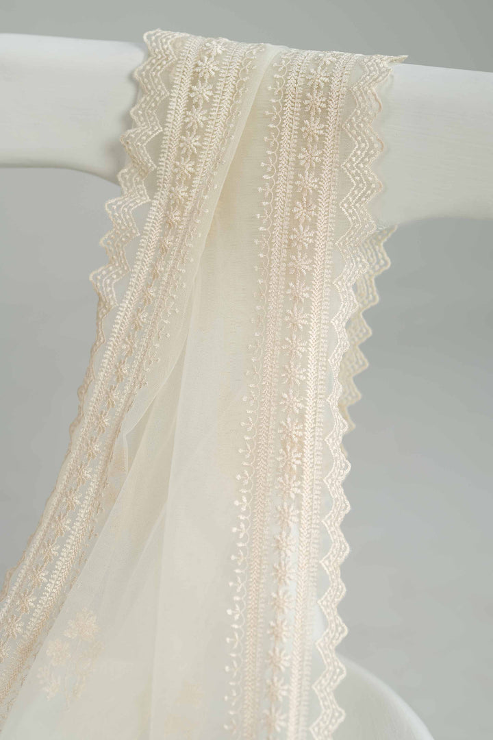 Stand-alone net embroidered dupatta finished with tassel hangings.