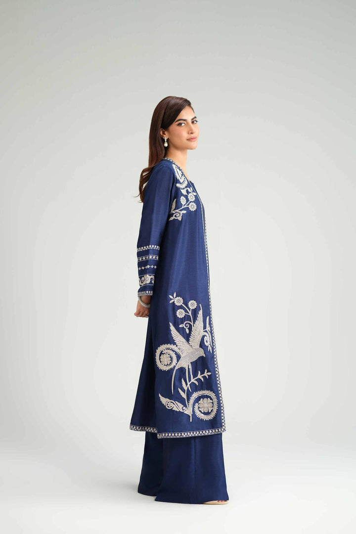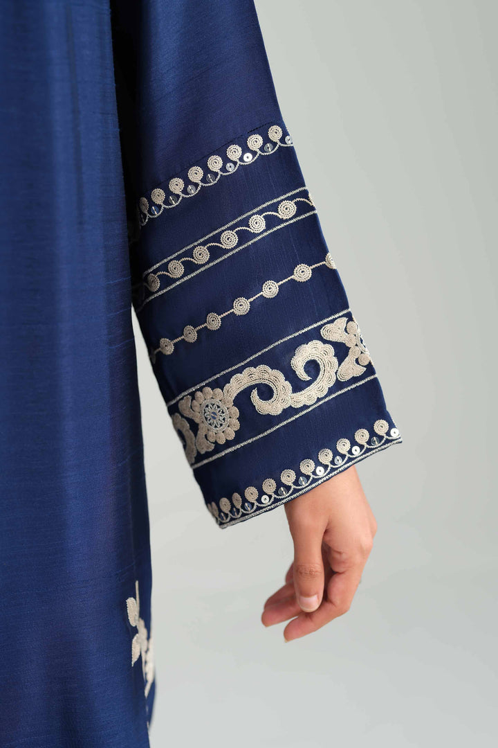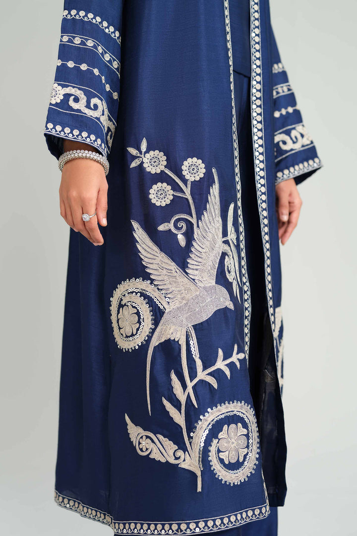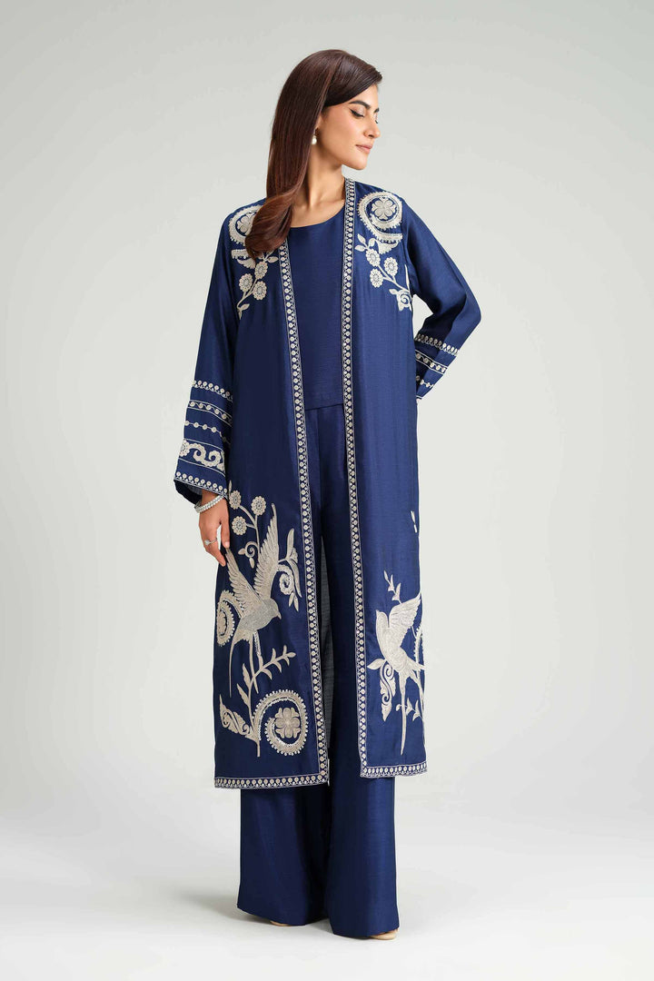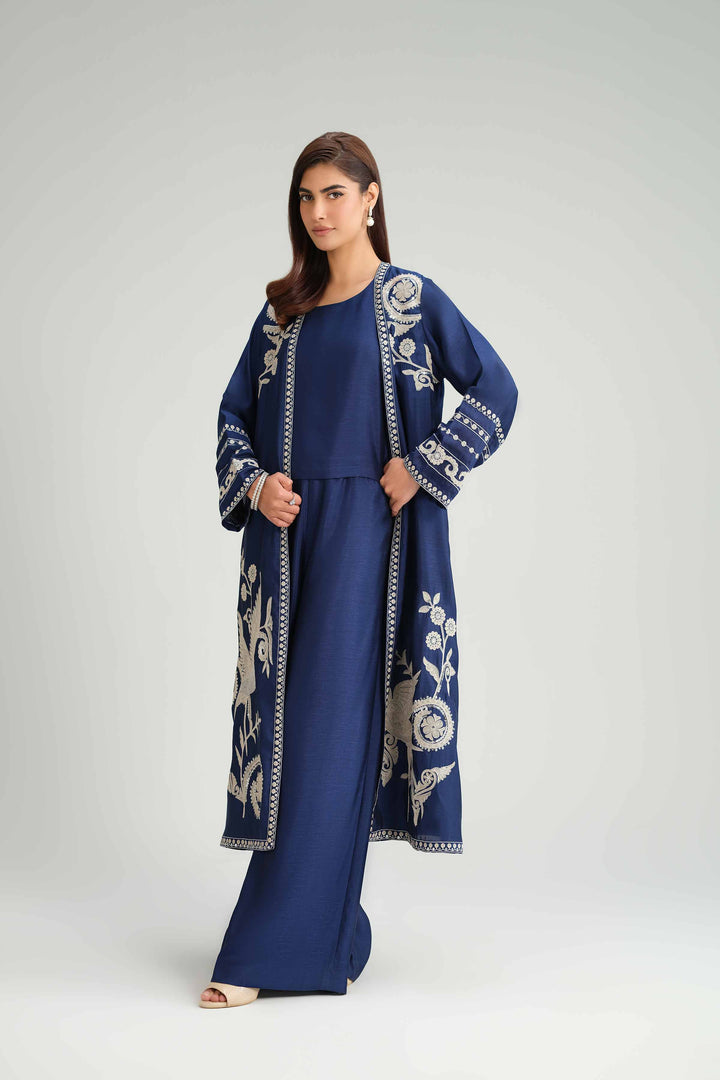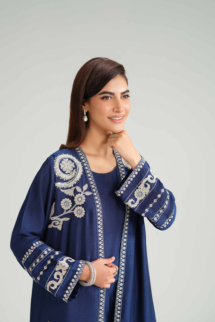 Elevate your festive wardrobe with this embroidered three-piece suit from the latest Luxury Pret Winter Collection, blending detailed artistry with classic sophistication.