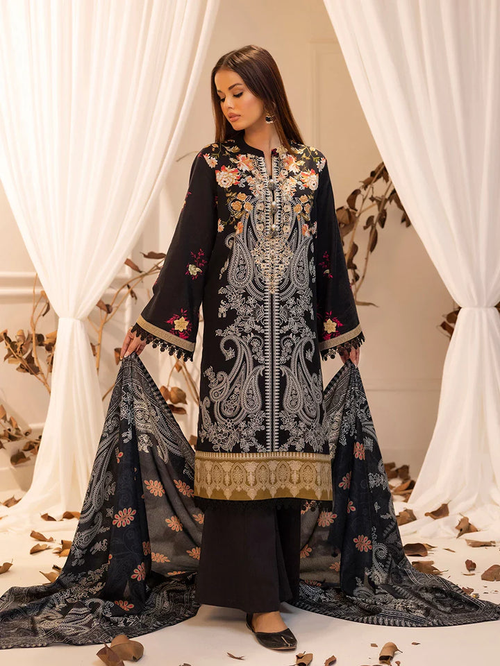 Embrace the warmth and elegance of winter with this stunning khaddar outfit. This set includes a beautifully printed and embroidered khaddar shirt that exudes charm and sophistication. The intricate embroidery adds a luxurious touch to the earthy, cozy fabric, making it perfect for any winter occasion. Paired with a vibrant printed shawl for added style and comfort, this ensemble provides a complete seasonal look. The dyed khaddar trouser complements the shirt’s design effortlessly, bringing versatility and style to your wardrobe. Perfect for both casual gatherings and semi-formal events, this outfit embodies tradition with a modern flair.