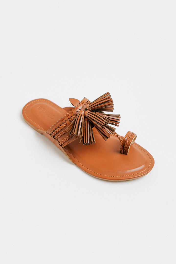 A chic and classy composition is layered over this graceful khola puri rendered in chocolate brown shade. Adorned with tassels at front, this contemporary khola puri is a style statement for sophisticated looks.
