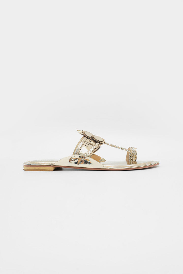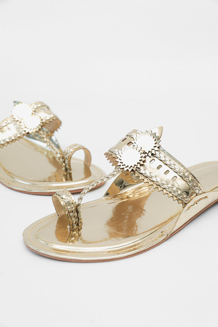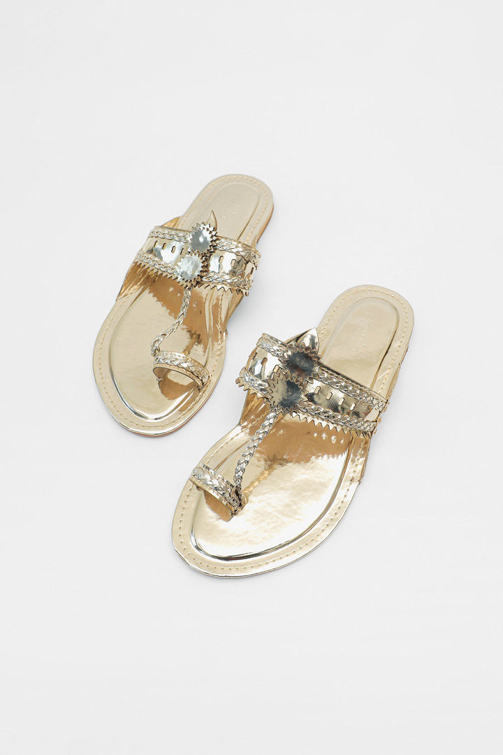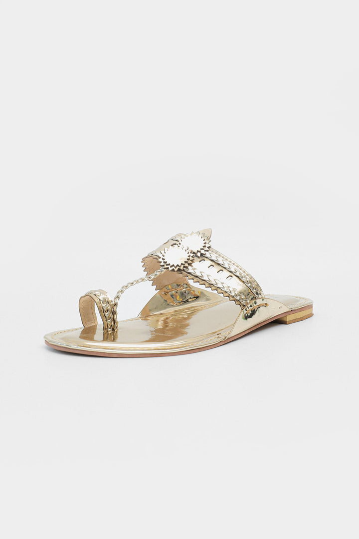 A chic and classy composition is layered over this graceful khola puri rendered in a dazzling gold shade. This contemporary khola puri is a style statement for sophisticated looks.