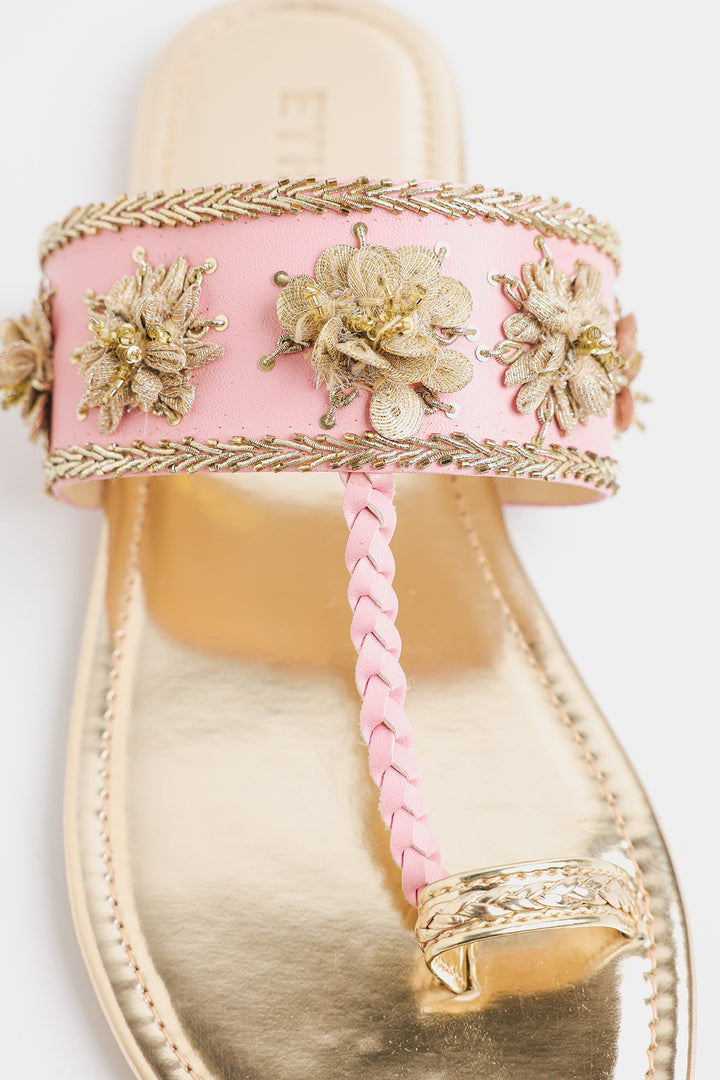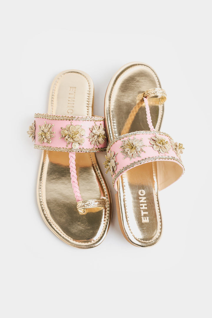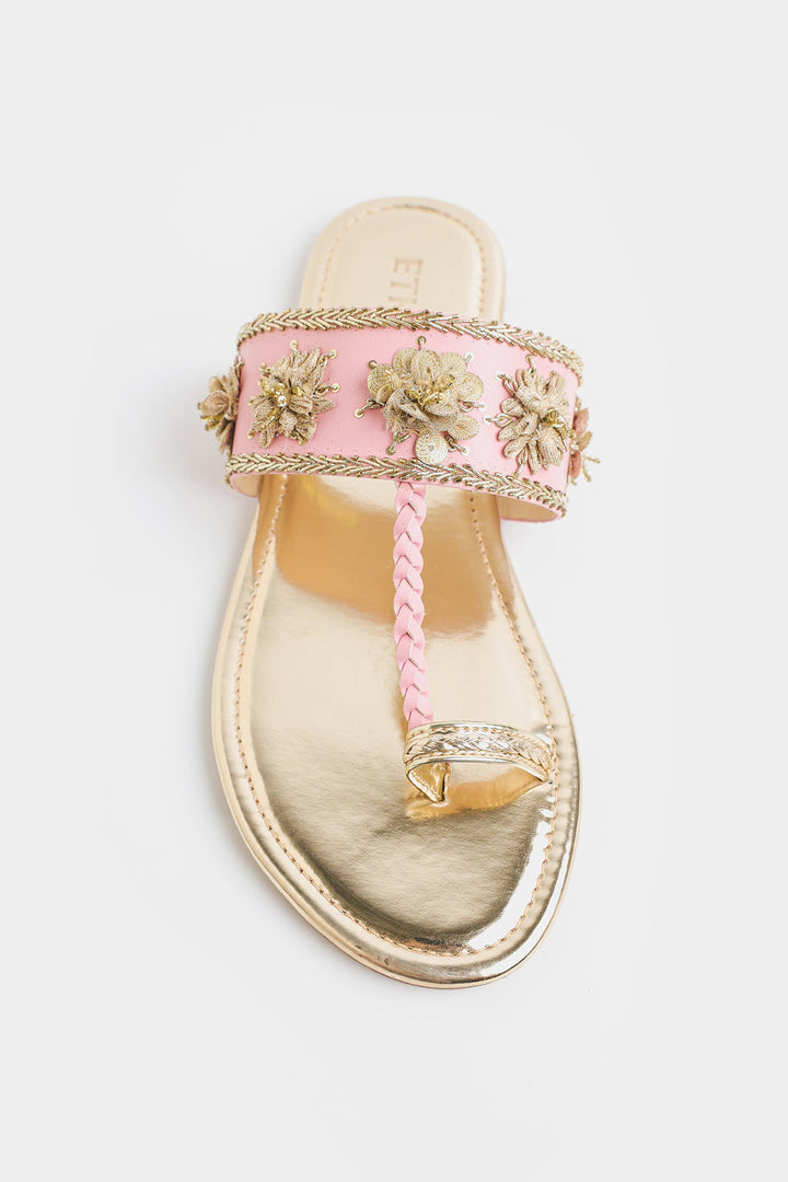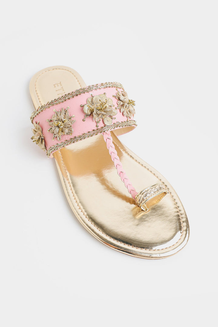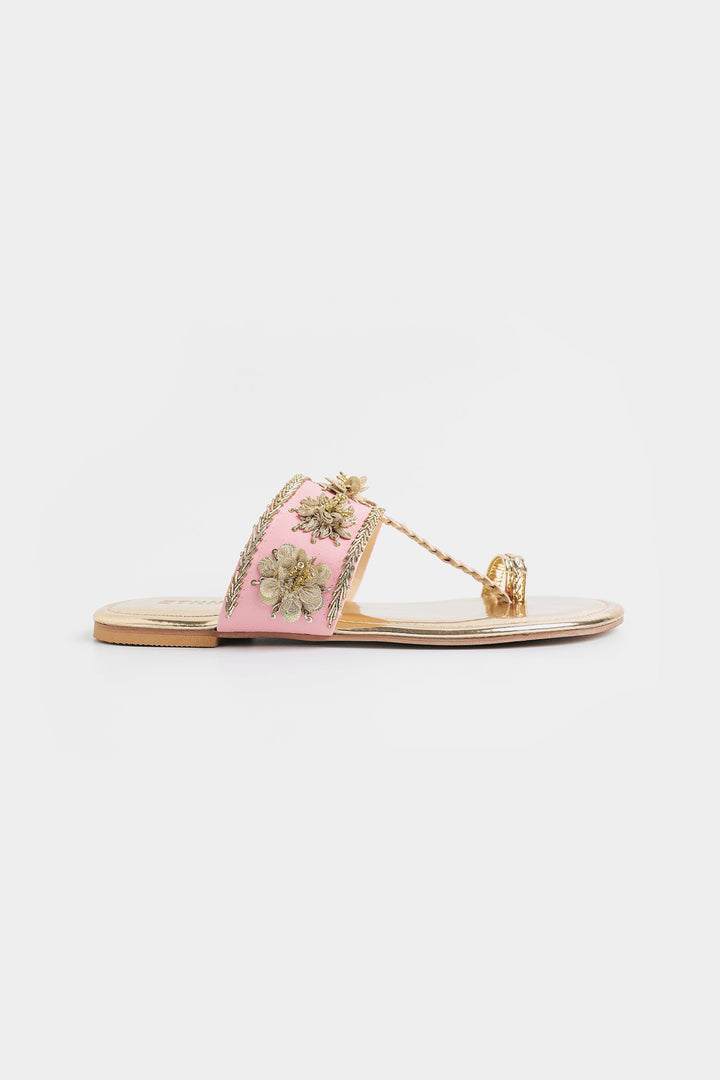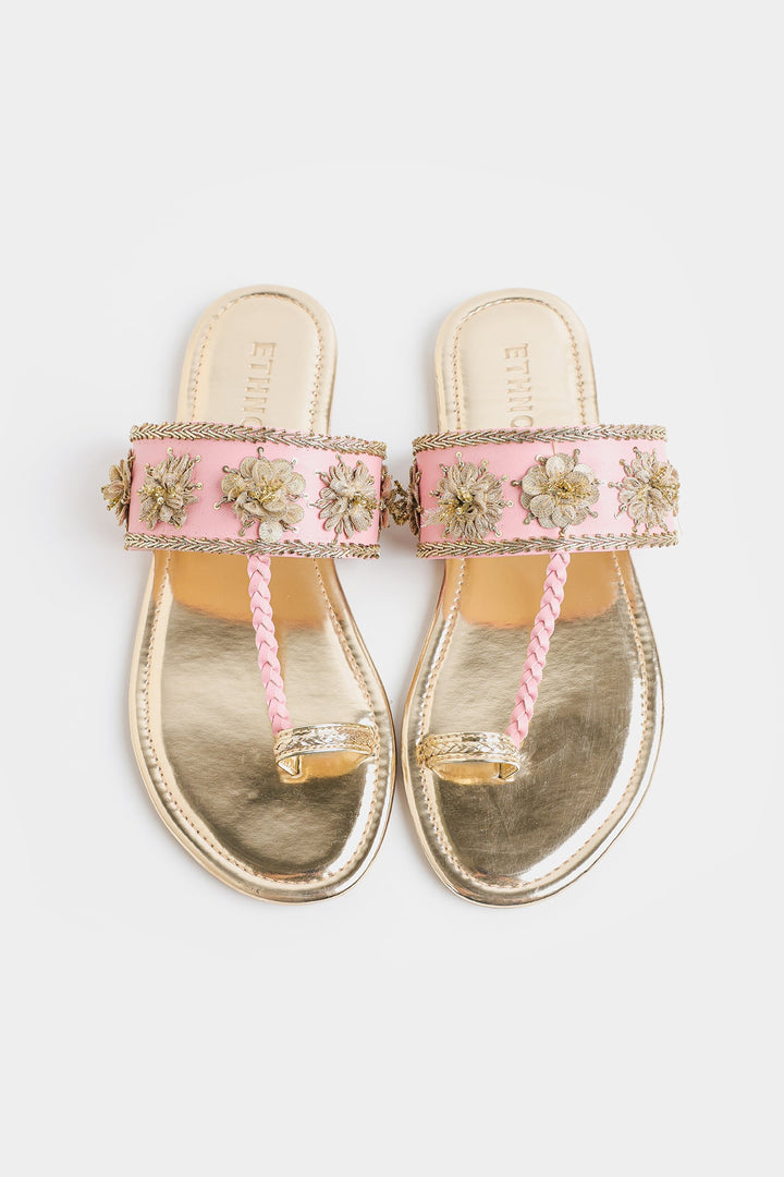 Enhance your look with our stunning khola puri, featuring floral strap design in subtle creme pink color, This traditional khola puri will elevate any outfit. Stand out with this unique and eye-catching footwear option. Perfect for adding a touch of fun to any outfit!