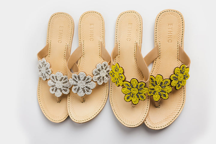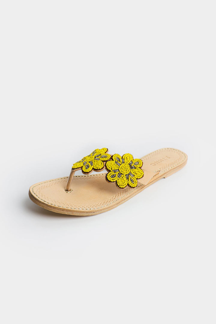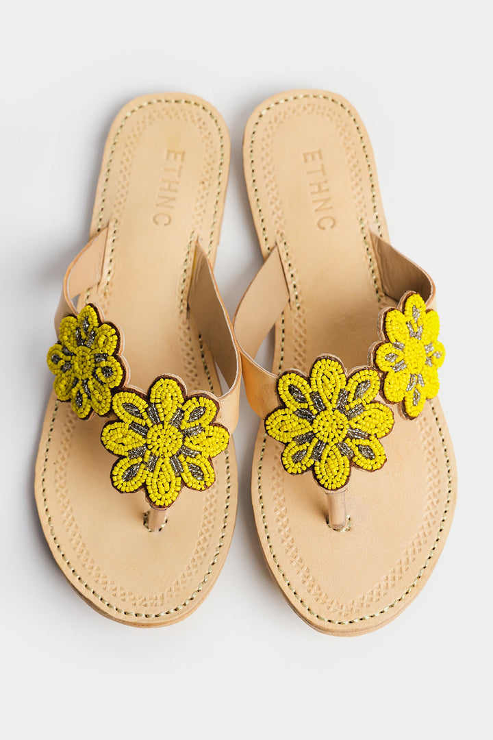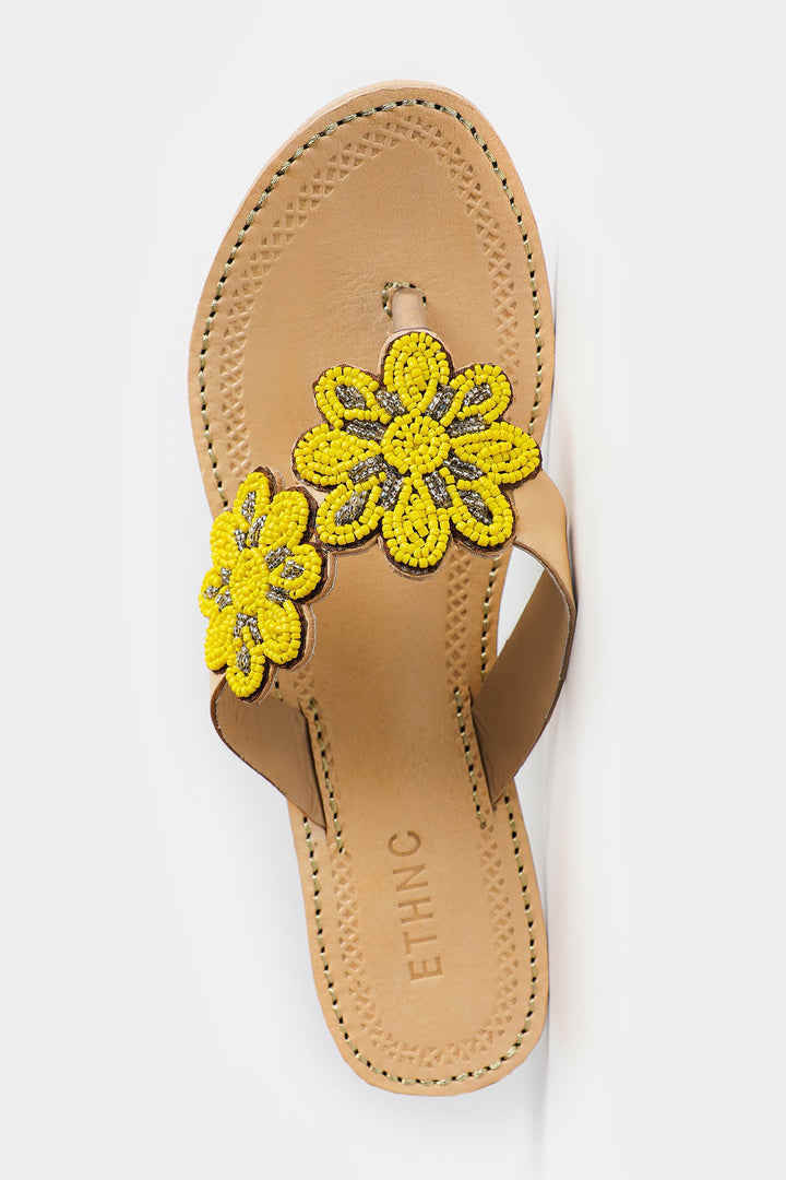 Enhance your look with our stunning khola puri, featuring floral strap design in vibrant yellow color. Made with fine quality materials, this traditional khola puri will elevate any outfit. Stand out with this unique and eye-catching footwear option.