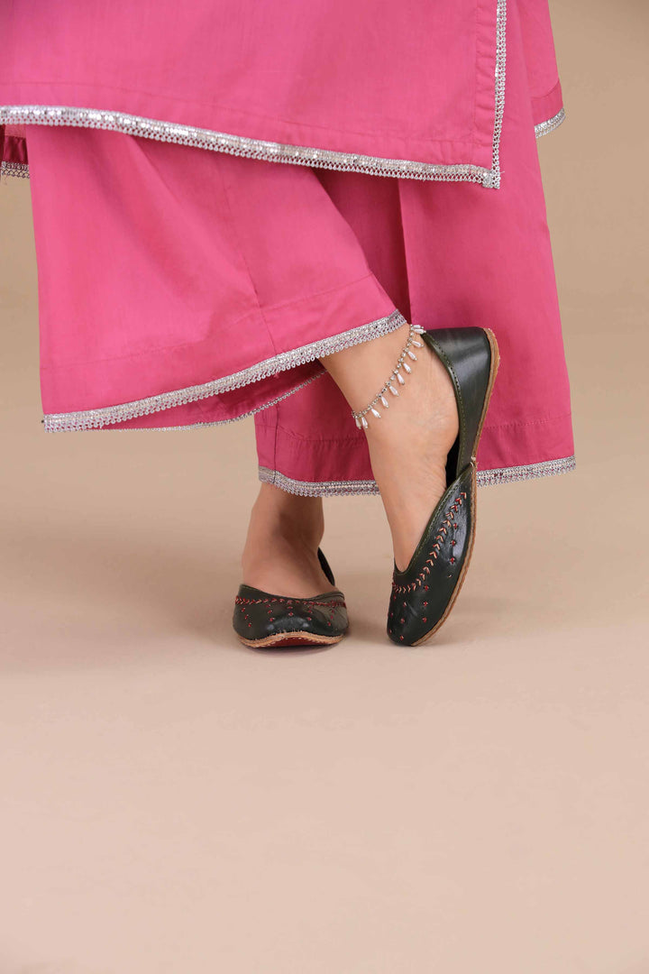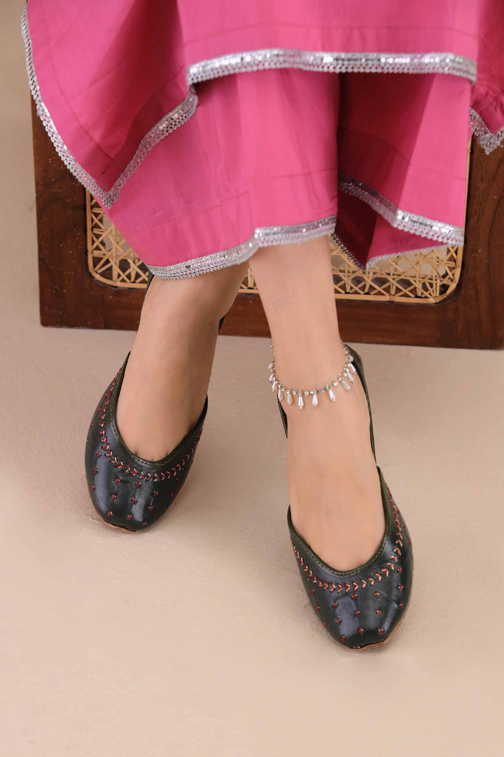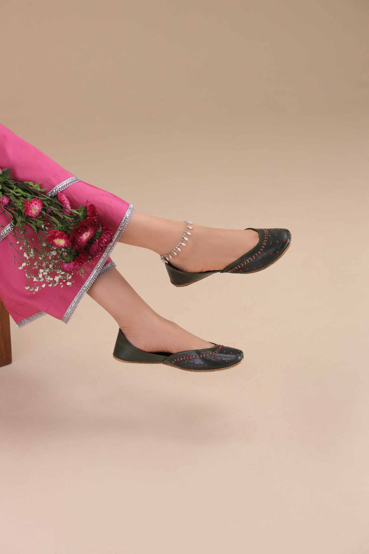 Elegant handcrafted Khussa adorned with fine threadwork detailing, blending tradition with everyday comfort. A perfect choice for a graceful look.