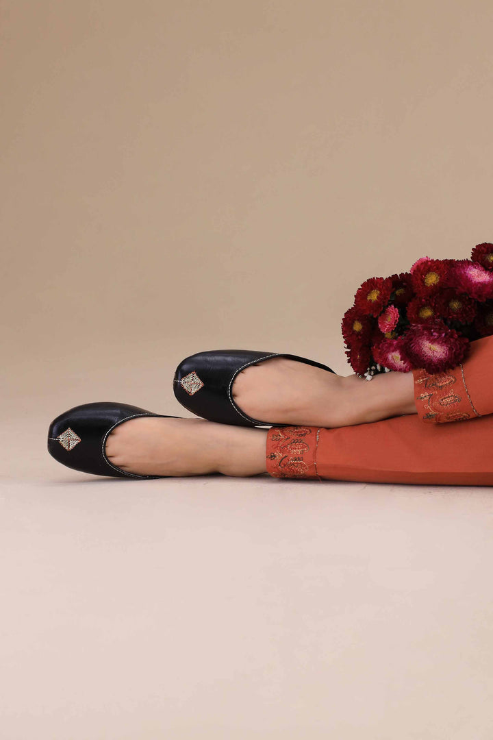 This elegant black handcrafted khussa is designed with fine detailing and traditional embroidery, offering timeless charm and everyday comfort. A versatile pair that complements both festive and casual outfits.