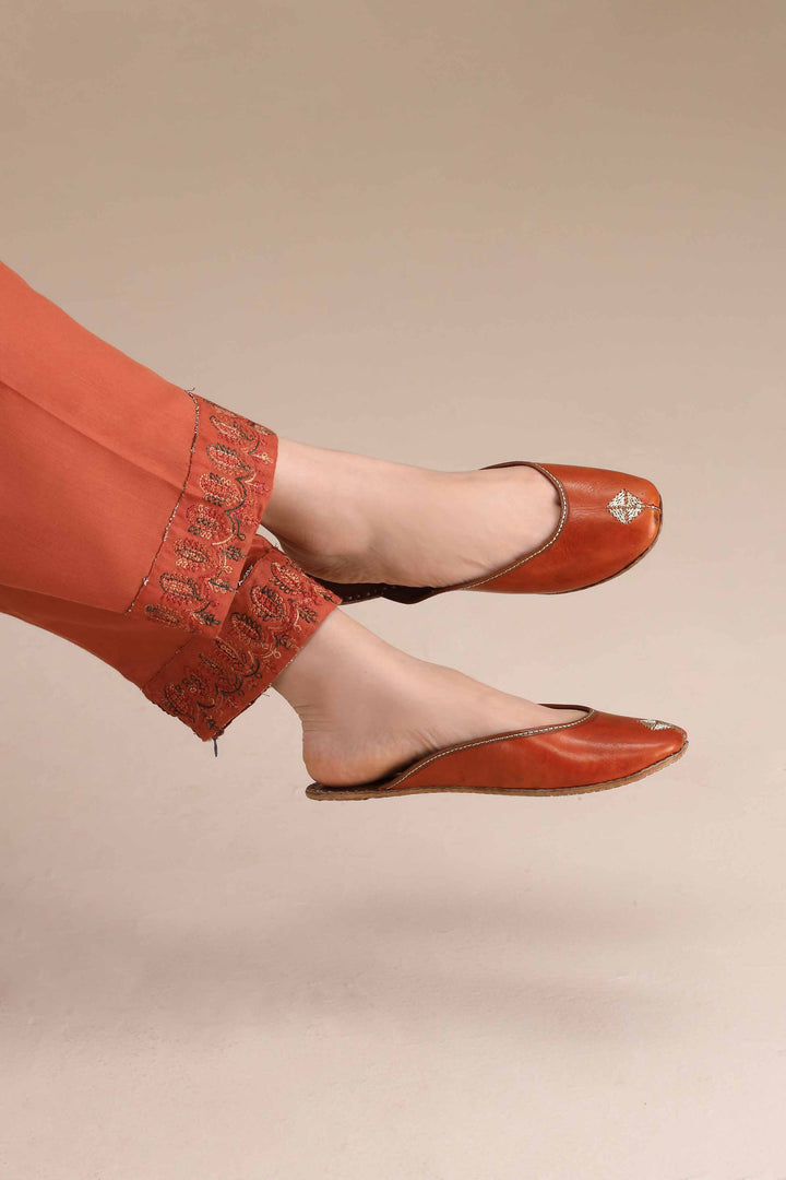 This elegant black handcrafted khussa is designed with fine detailing and traditional embroidery, offering timeless charm and everyday comfort. A versatile pair that complements both festive and casual outfits.