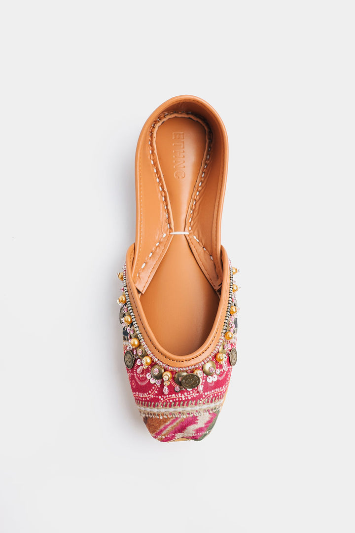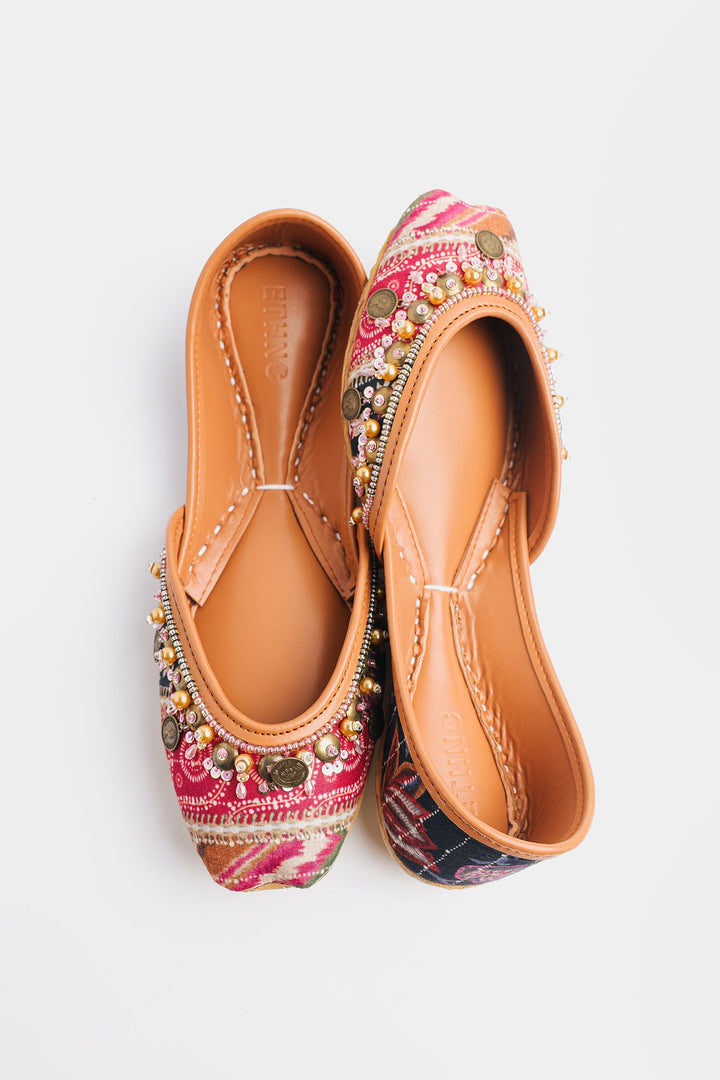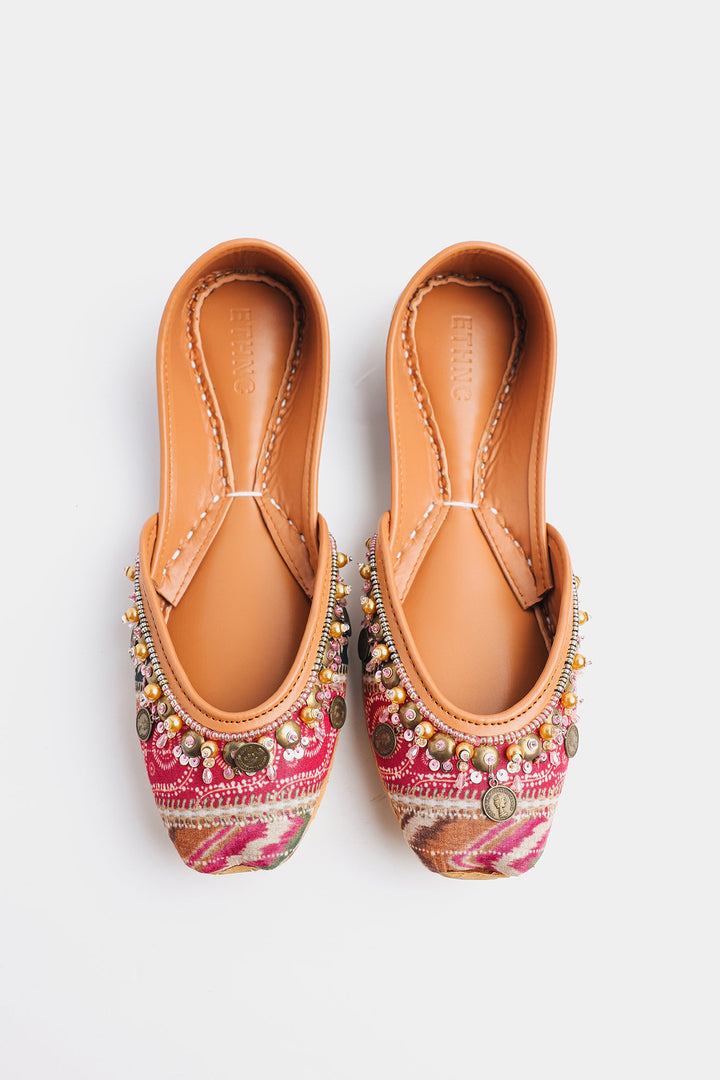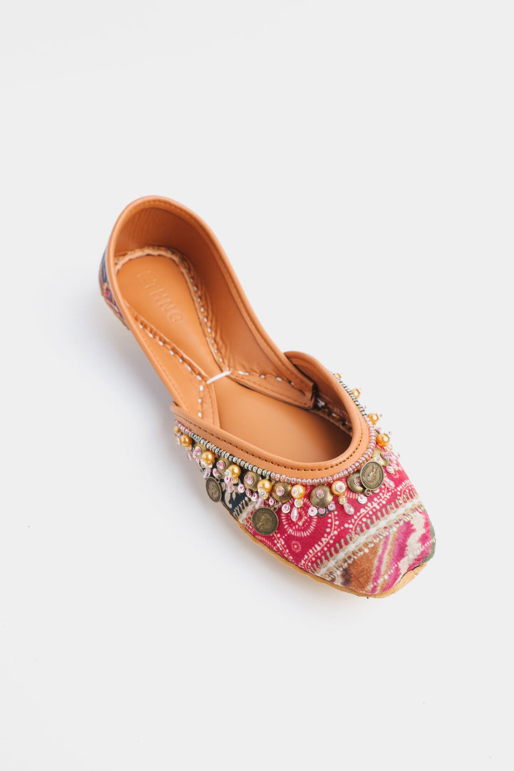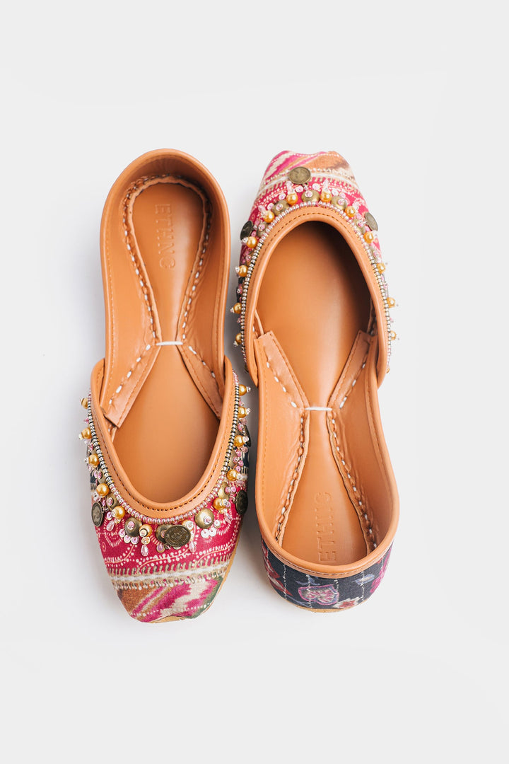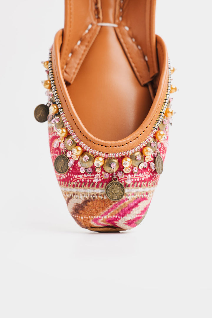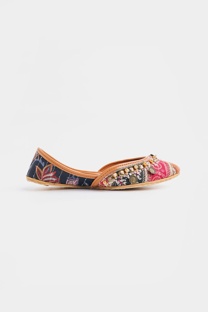 This elegant khussa features a classy design having upper edge decorated with detailed embroidery, beads, and small floral embellishments in multiple colors structured yet elegant look. A must-have for any fashion-savvy individual.