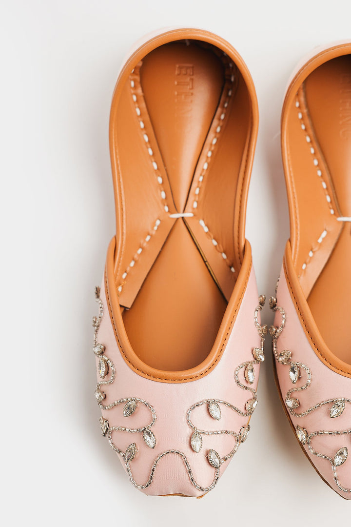 Unleash vibrant elegance with these stunning magenta Khussas. Adorned with delicate embroidery and tiny golden accents, they offer a perfect blend of traditional craftsmanship and eye-catching color, ideal for making a stylish statement. -Pale Coral Color