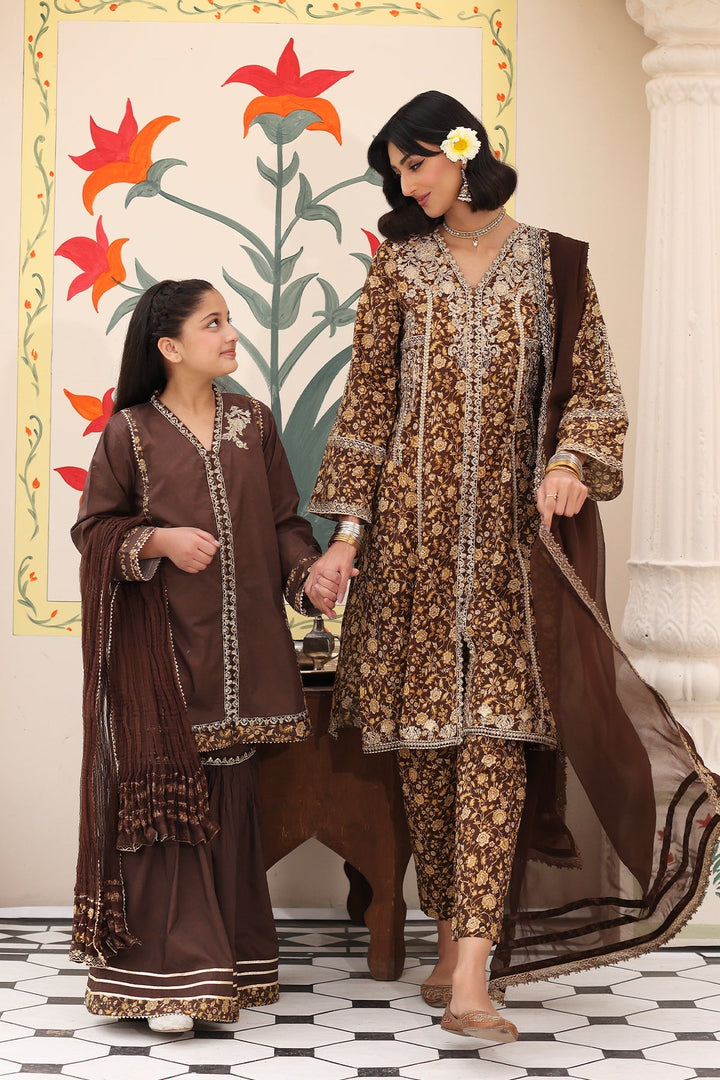 3-PC Embroidered Cotton Shirt with Organza Dupatta and KIDS-4-01