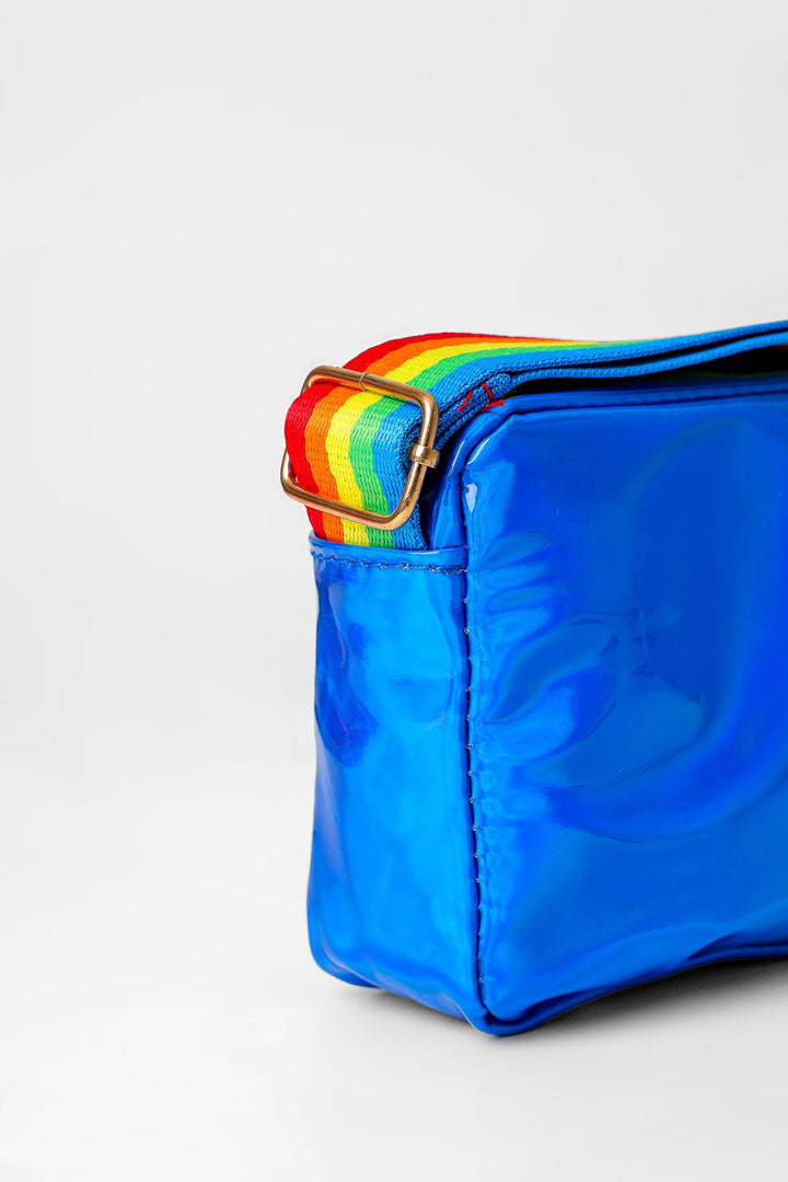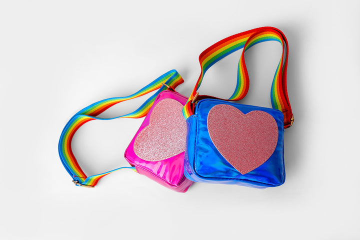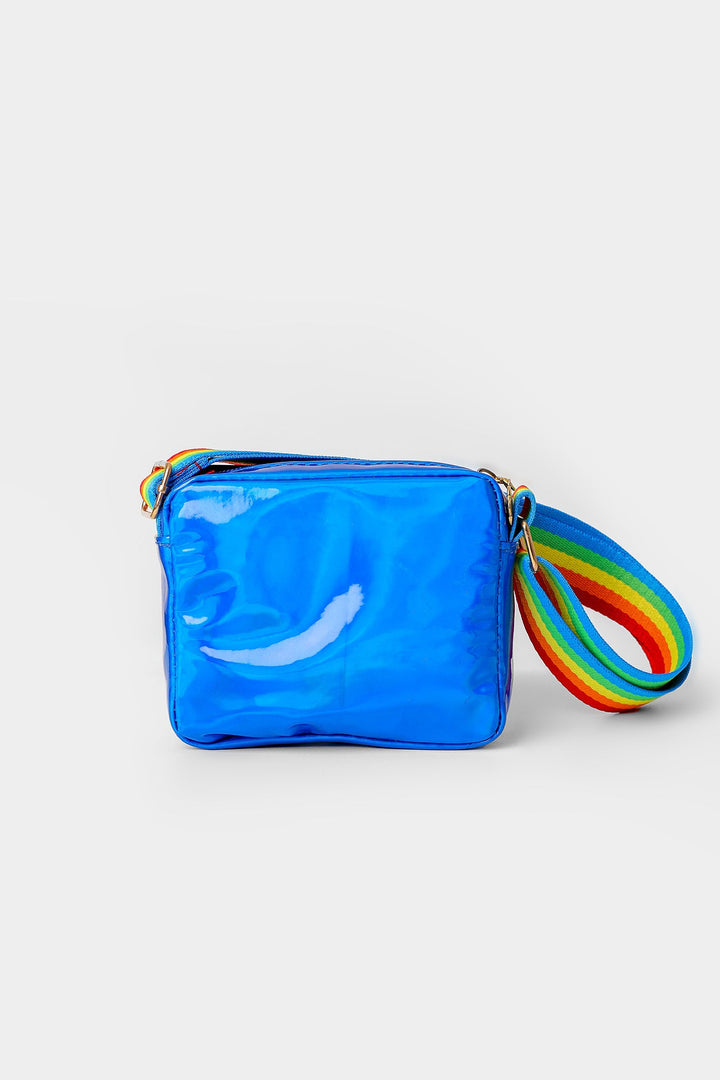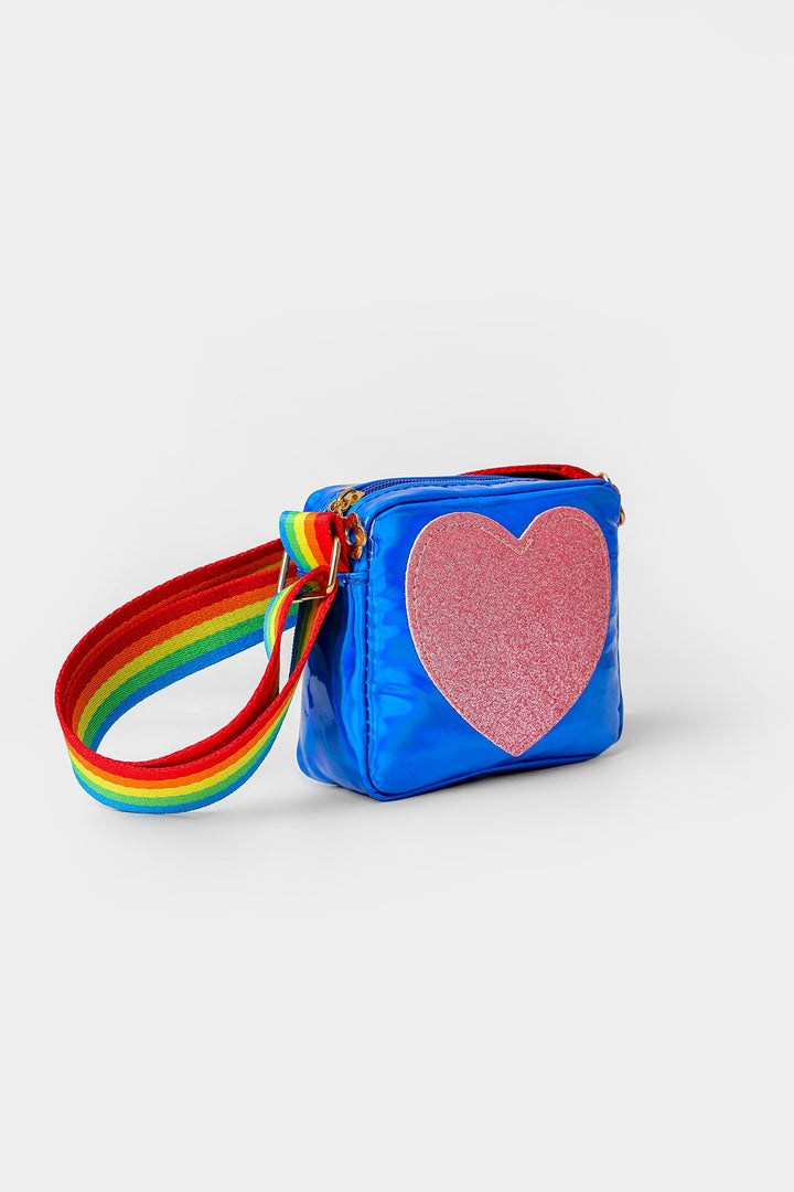 Taste some sweet this season with this cute and chic rectangle bag rendered in a ocean blue shade. Portraying a trendy silhouette with hear shape scintillating design at front and adorned with a trendy printed strap in vibrant hues, let your girls complete their classy look with this style statement bag.