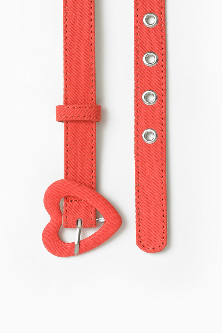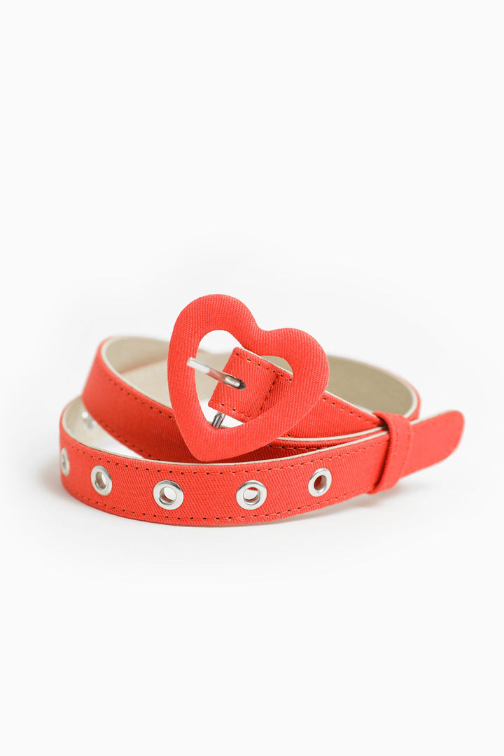 A trendy yet chic composition is portrayed on this charming red belt adorned with heart silhouette buckle design. Enhanced with metallic belt hole rings, this contemporary accessory is a must have for your girls to style like a fashion diva.