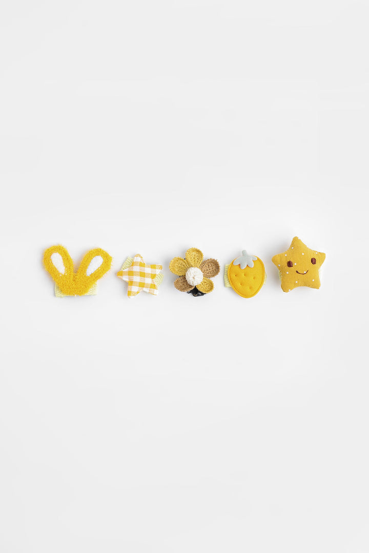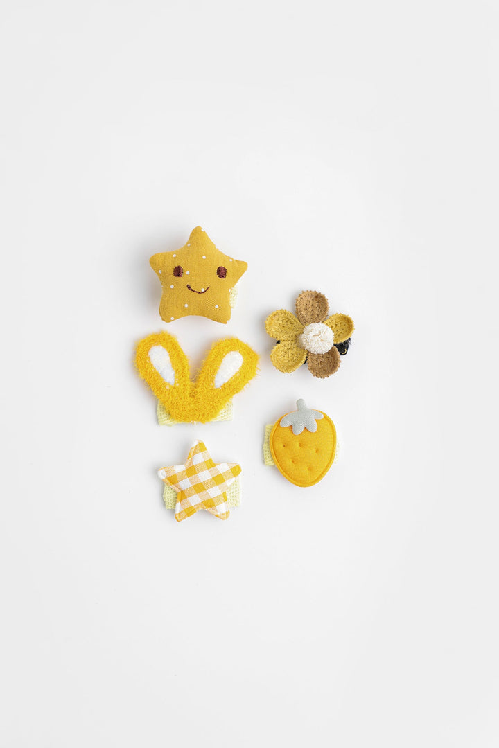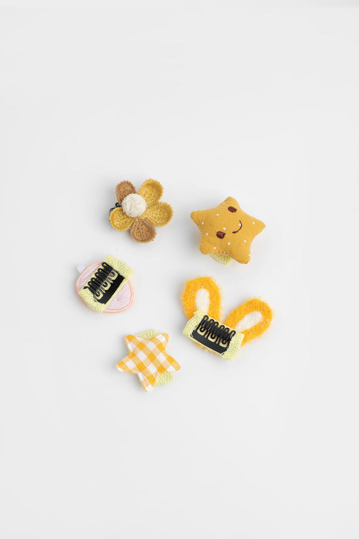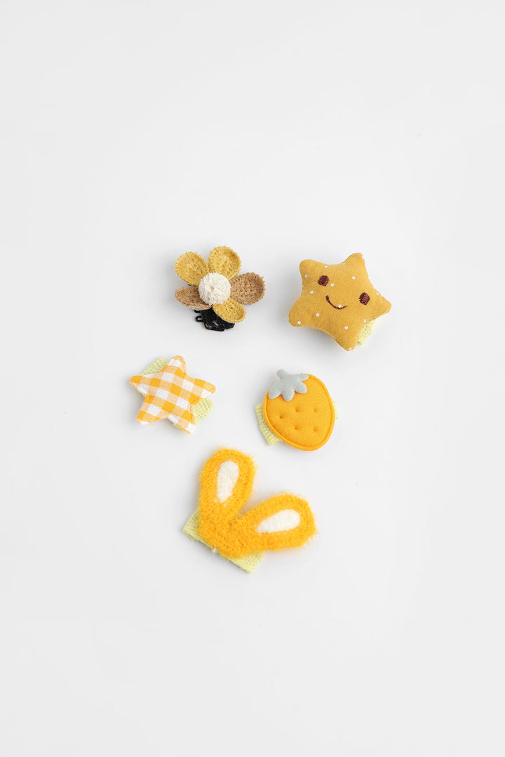 Attractive designs are portrayed on these trendy hair pins illustrating quirky silhouettes in vibrant yellow hue. Comprising of stars and floral silhouette with strawberry and bunny ears, these gorgeous hair pins are a great option to style with elegant outfits.