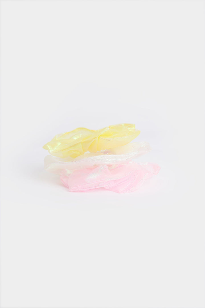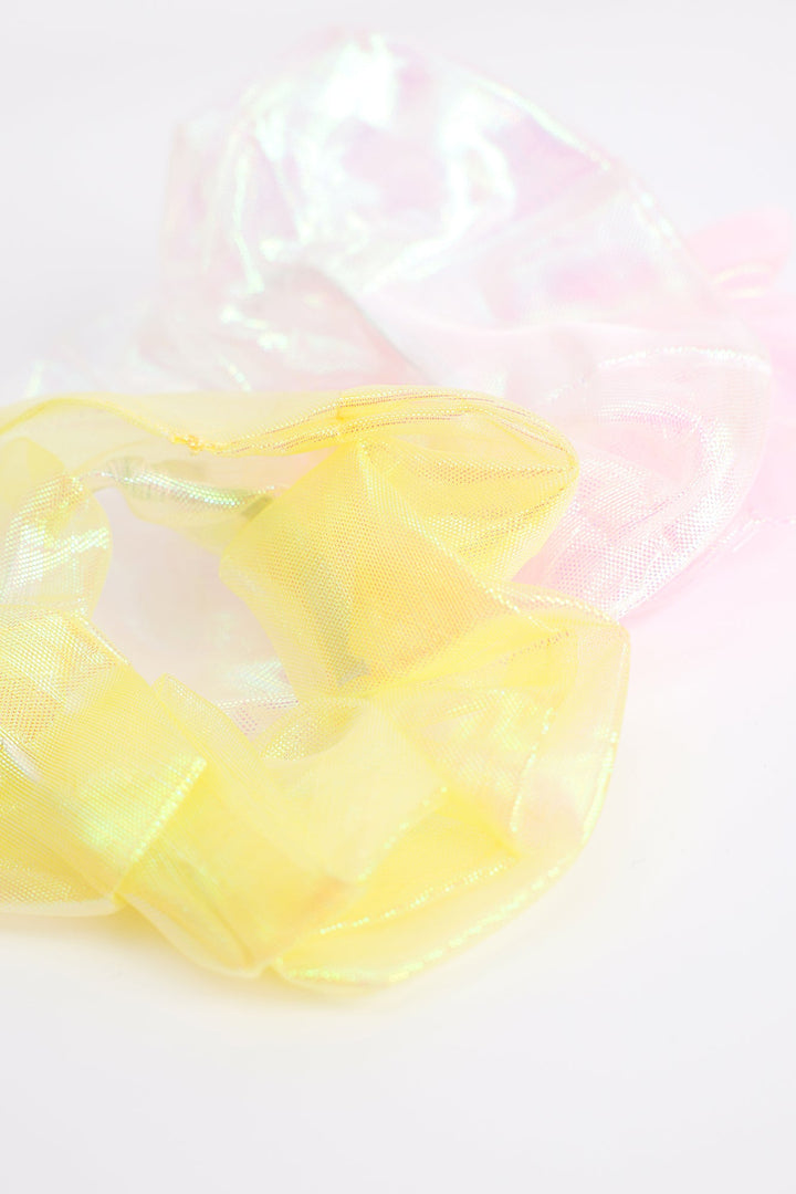 A chic and trendy design is portrayed on these contemporary scrunchies crafted from translucent material and illustrated in pink, yellow and white hues. Style these statement scrunchies with your girls and look classy.