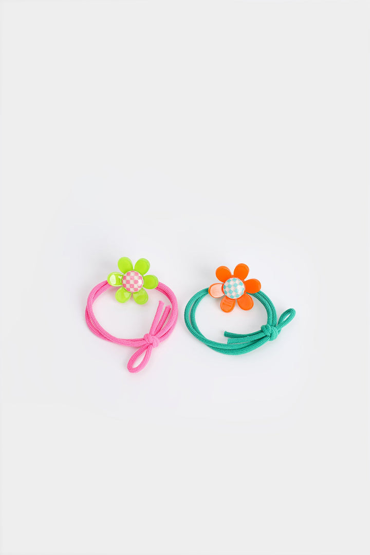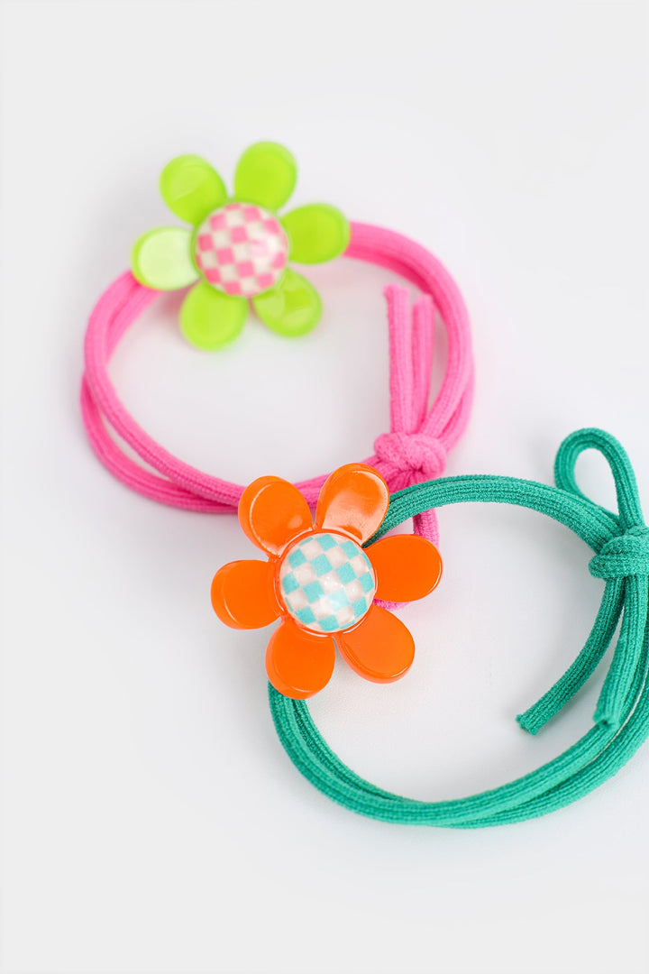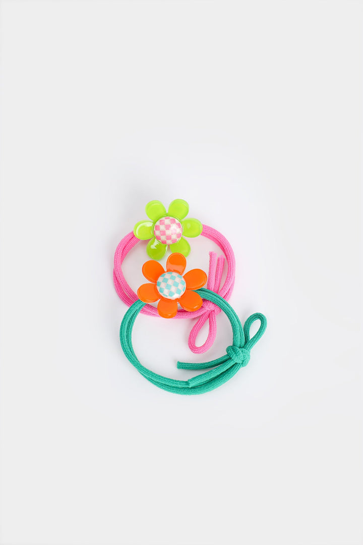Embrace the trendy look this season with these contemporary hair pony illustrated in vibrant hues with floral designs. A stylish option for accessory to pair with variety of outfits.
