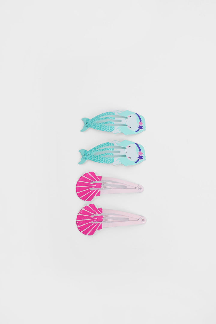 Look trendy this season in these attractive hair pins rendered in pink and blue tones illustrating fish and shell designs. Let your girls style these contemporary hair pins for elegant look.