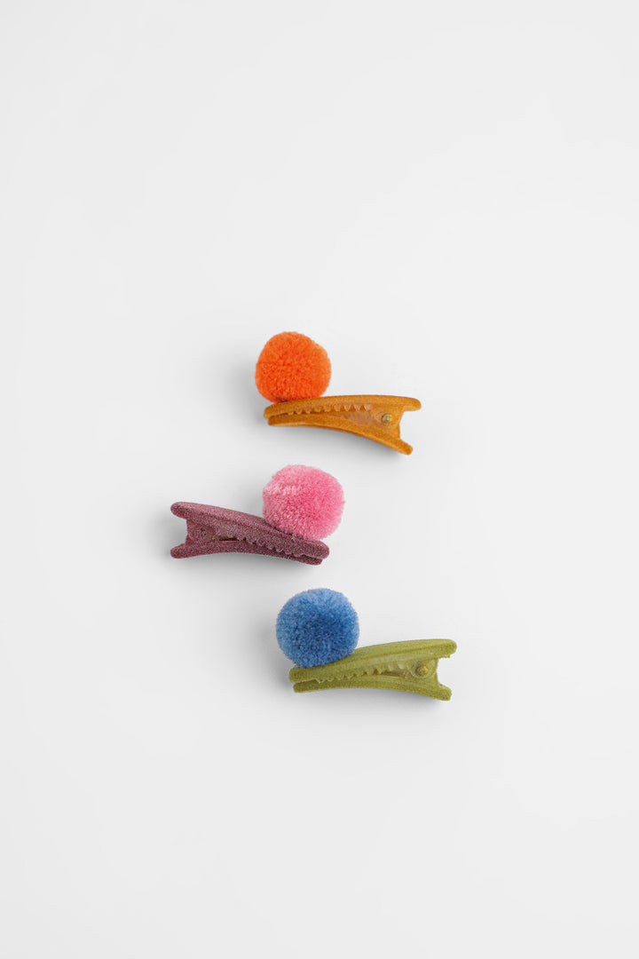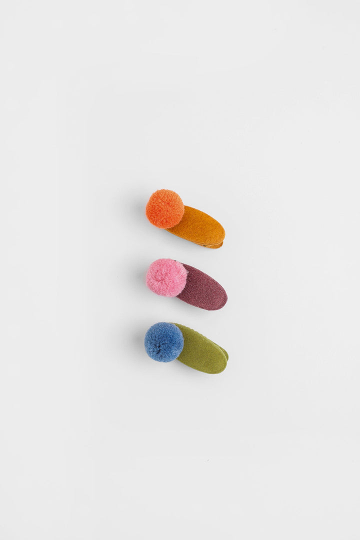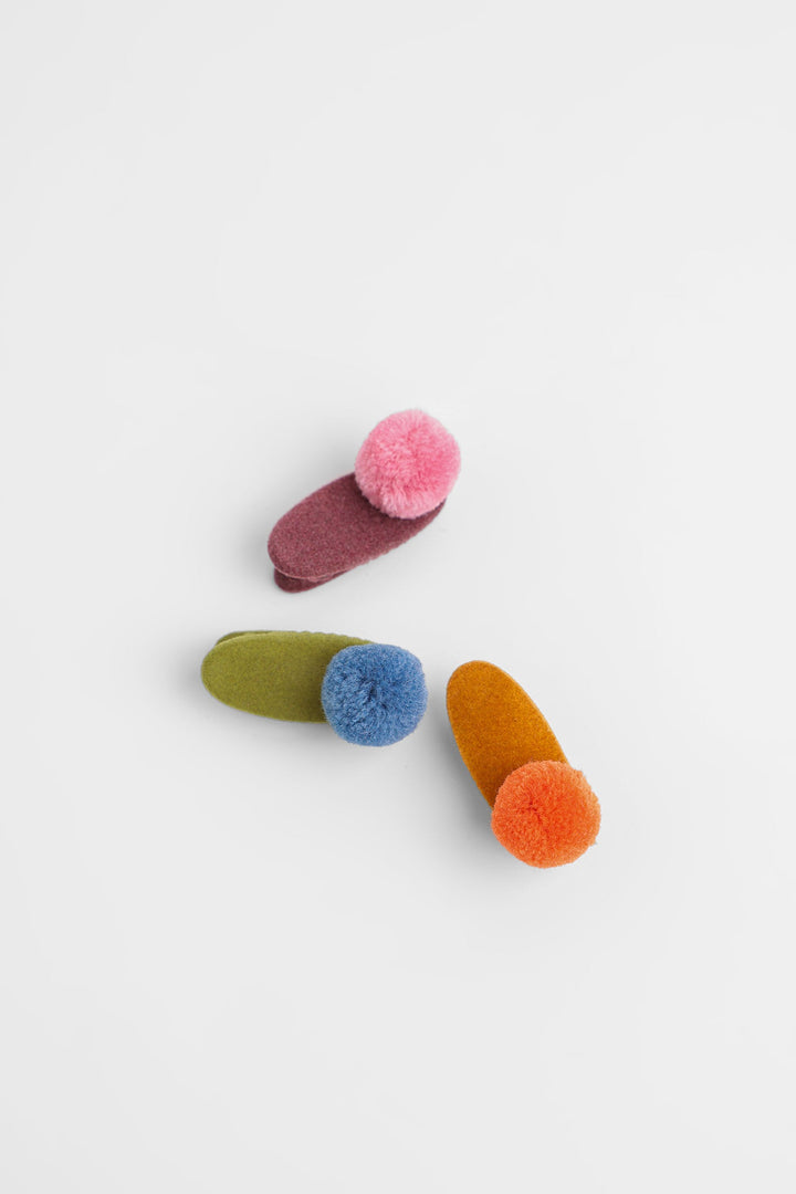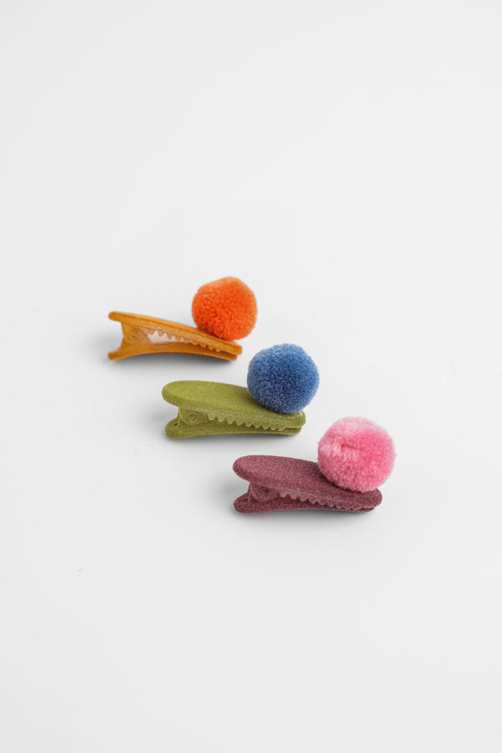 A trendy design is portrayed on these elegant hair clips illustrating a contemporary design with pom poms and rendered in vibrant colorful hues. Let your girls style these adorable hair clips with matching outfits this season.