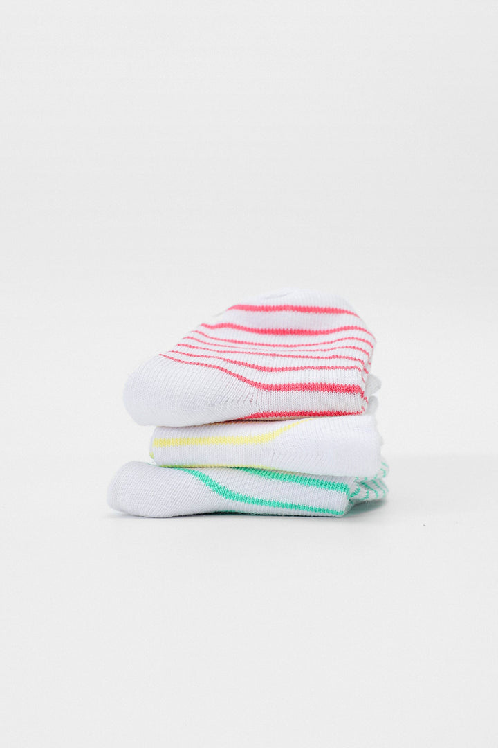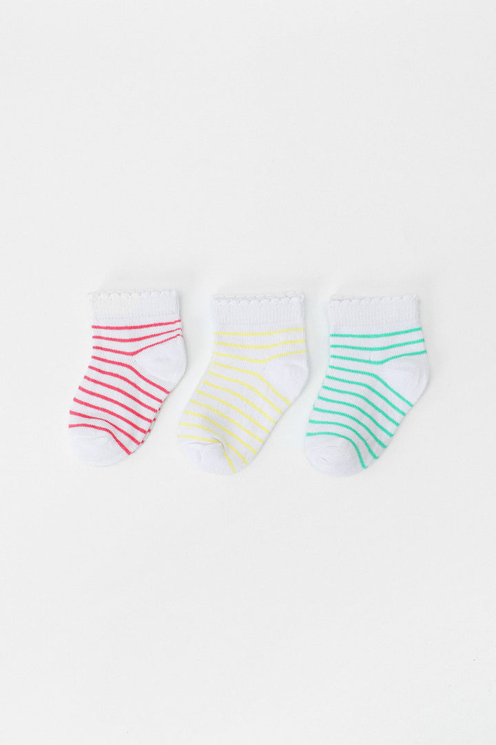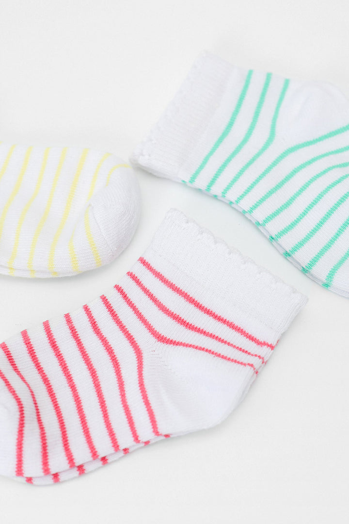 Endearing and delightful three pair of socks adorned with stripes in soft pink, yellow and blue color. It is an ideal option to match with variety of outfits.