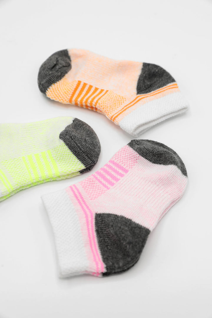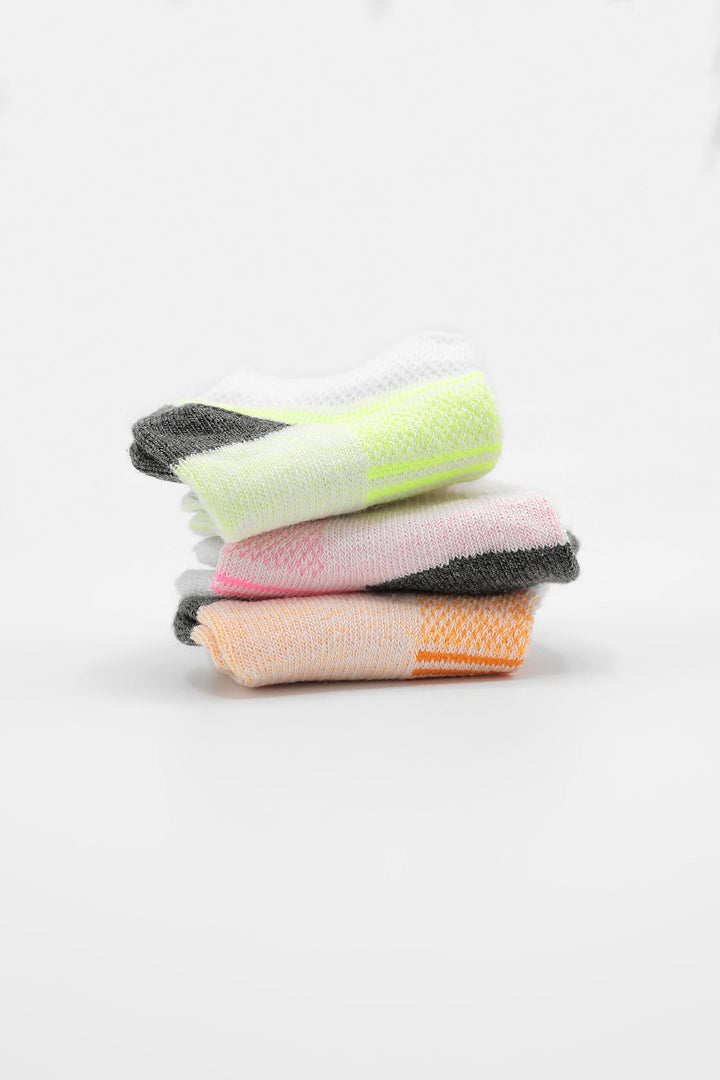 Endearing and delightful three pair of socks rendered in soft pink, coral and yellow color with trendy designs is an ideal option to match with variety of outfits.