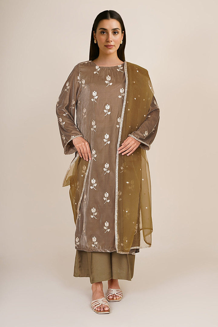3 Piece - Embroidered Velvet Suit - KPW24-P3143-143