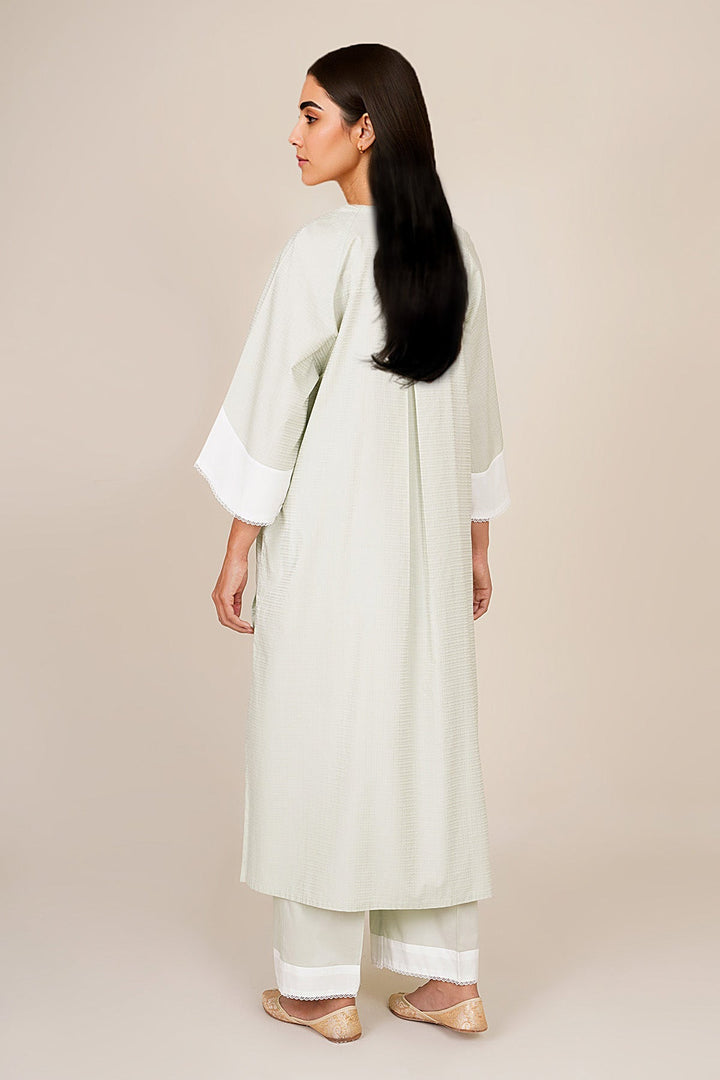 Embellished Round Neckline With V-Slit, Full Sleeves, Long Shirt