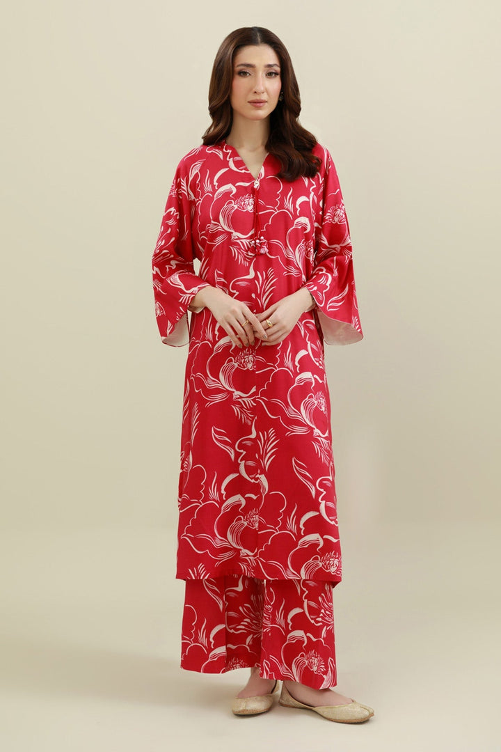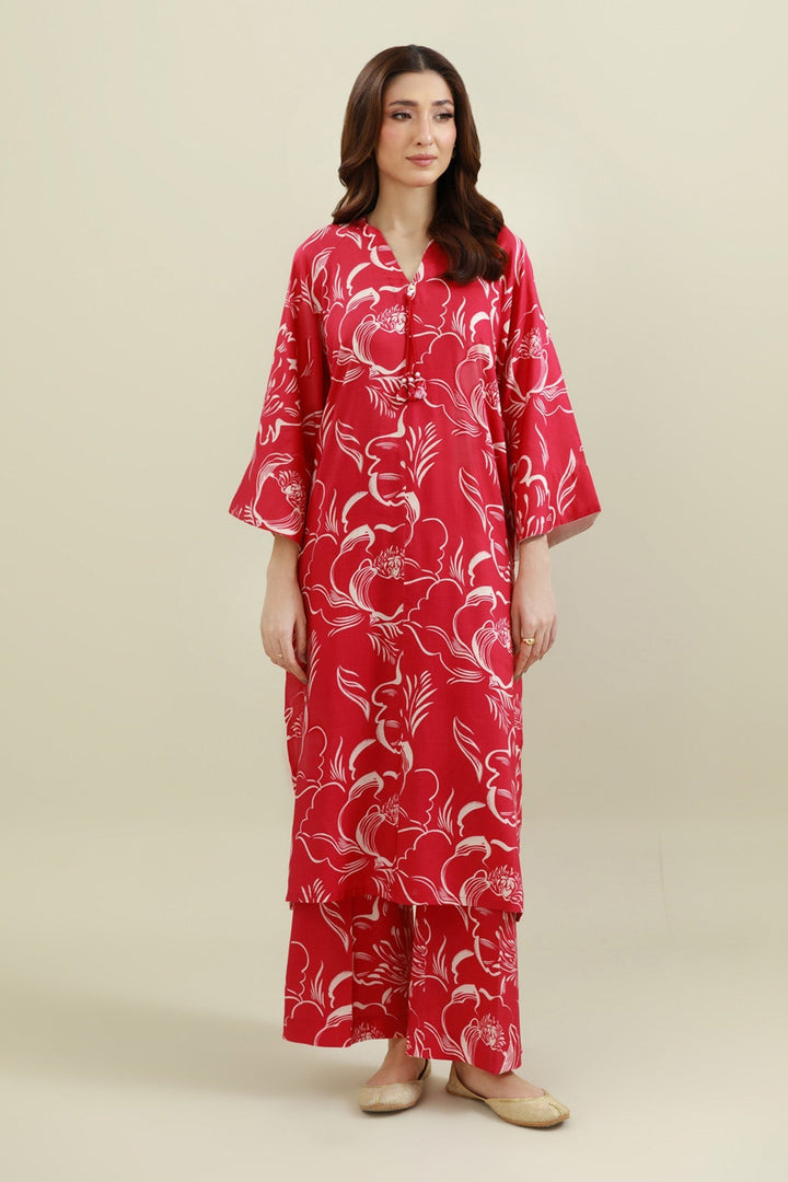 2 Piece - Printed & Embellished Linen Suit - KPW25-P3795