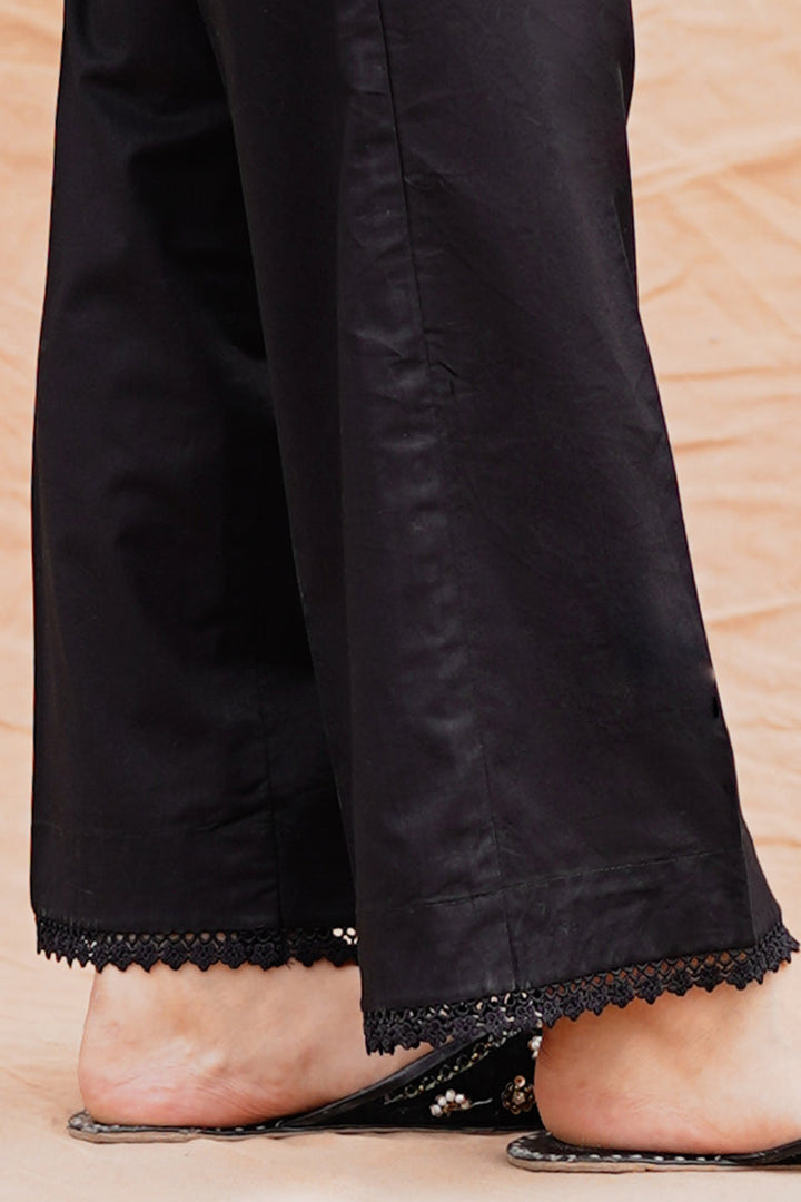 LACE ON HEM STRAIGHT CAMBRIC PANTS