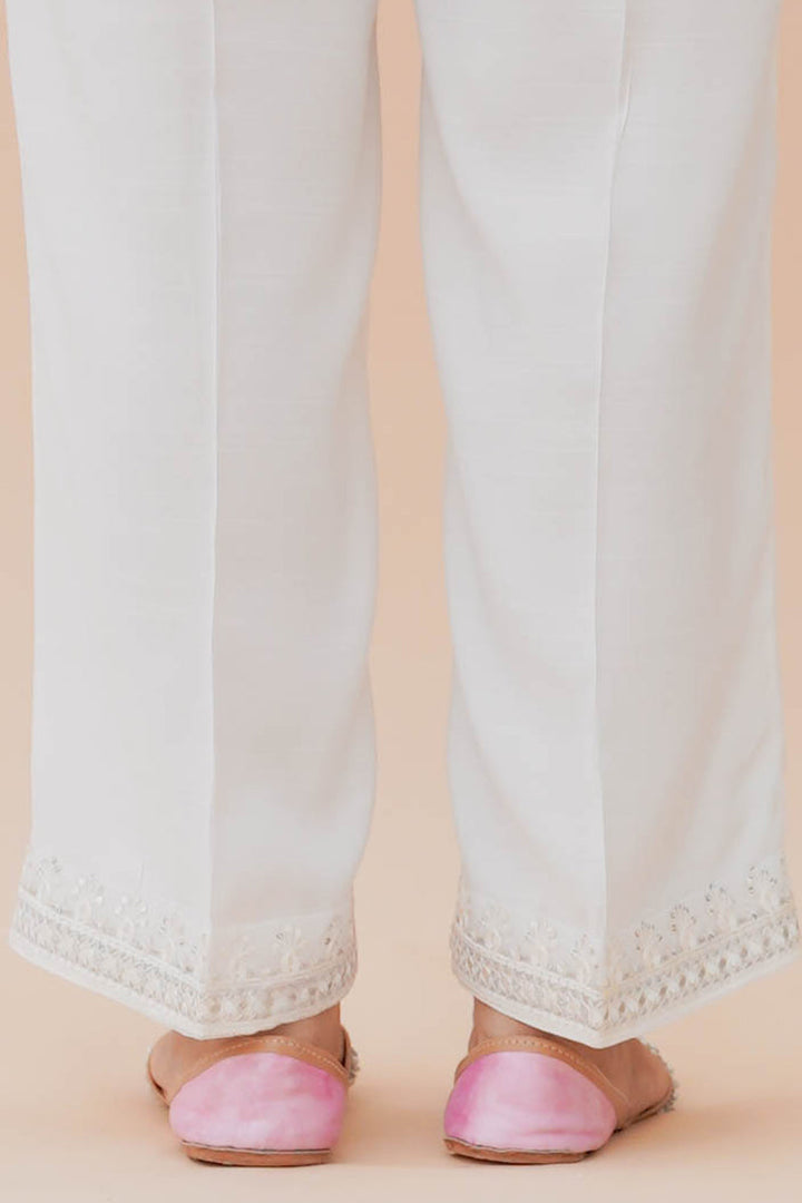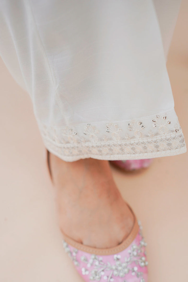 STRAIGHT RAW SILK SEQUIN EMBROIDERED PANTS