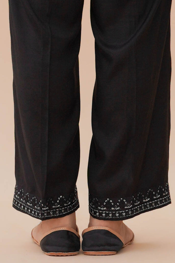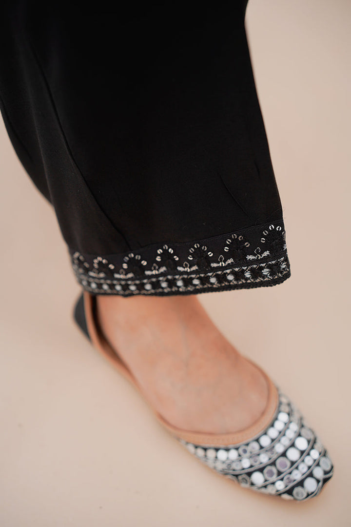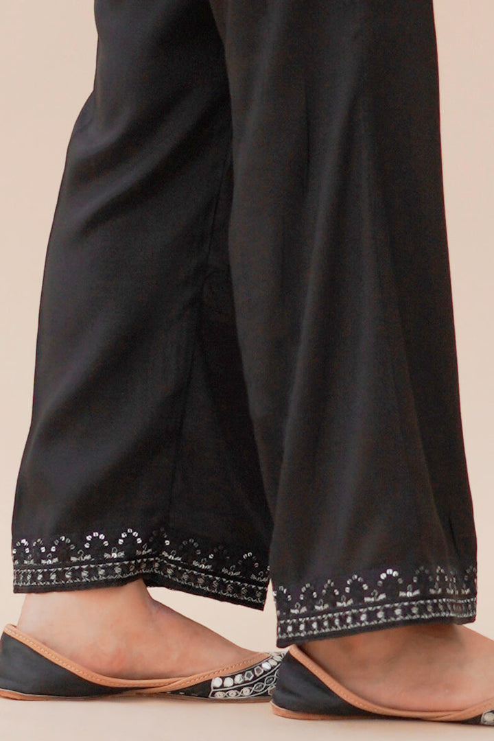 STRAIGHT RAW SILK SEQUIN EMBROIDERED PANTS