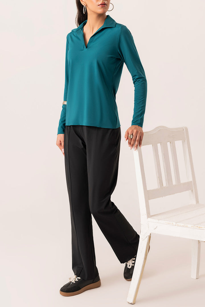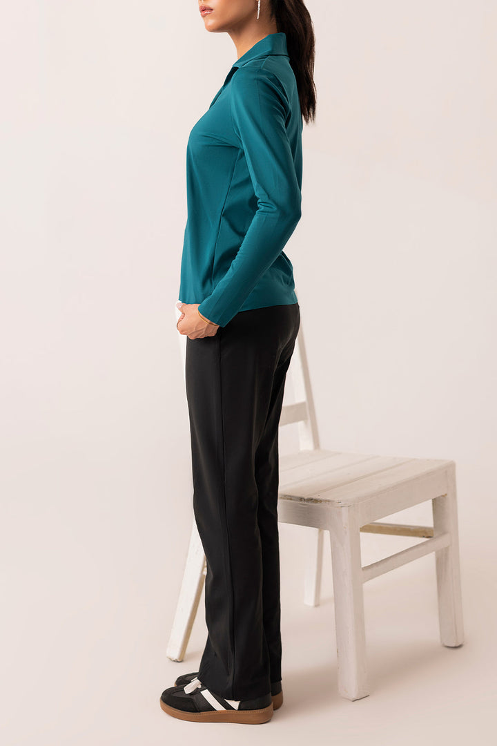 The Long Sleeve Polo – Teal by SAYA Combines Timeless Comfort With Effortless Style. Crafted From Soft, Stretchable Scuba Fabric, This Polo Features A Classic Collar With A Button Placket And Full Sleeves Designed For Year-Round Versatility. The Refreshing Teal Shade Adds Subtle Depth And Visual Freshness, Making It An Effortless Choice For Smart-Casual Styling, Layered Looks, Or Relaxed Sophistication.