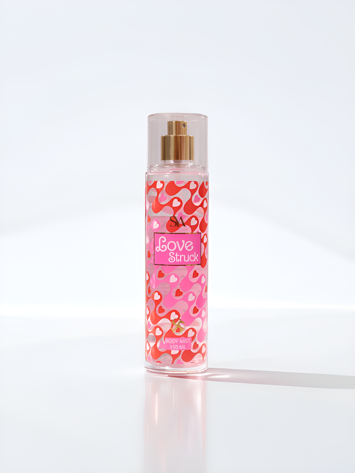 Fall head over heels with Love Struck, a body mist that captures the euphoria of new romance and the thrill of spontaneous moments. Bursting with floral freshness and juicy fruity accords, this playful fragrance is kissed with a twist of citrusy brightness and softened by a gentle powdery veil. Vibrant and flirty, Love Struck is made for the bold-hearted—those who embrace love, laughter, and the magic of the moment. Spray it on to feel instantly refreshed, radiant, and irresistibly charming.