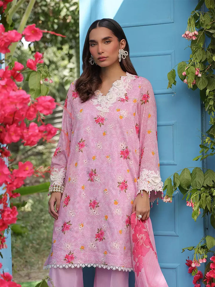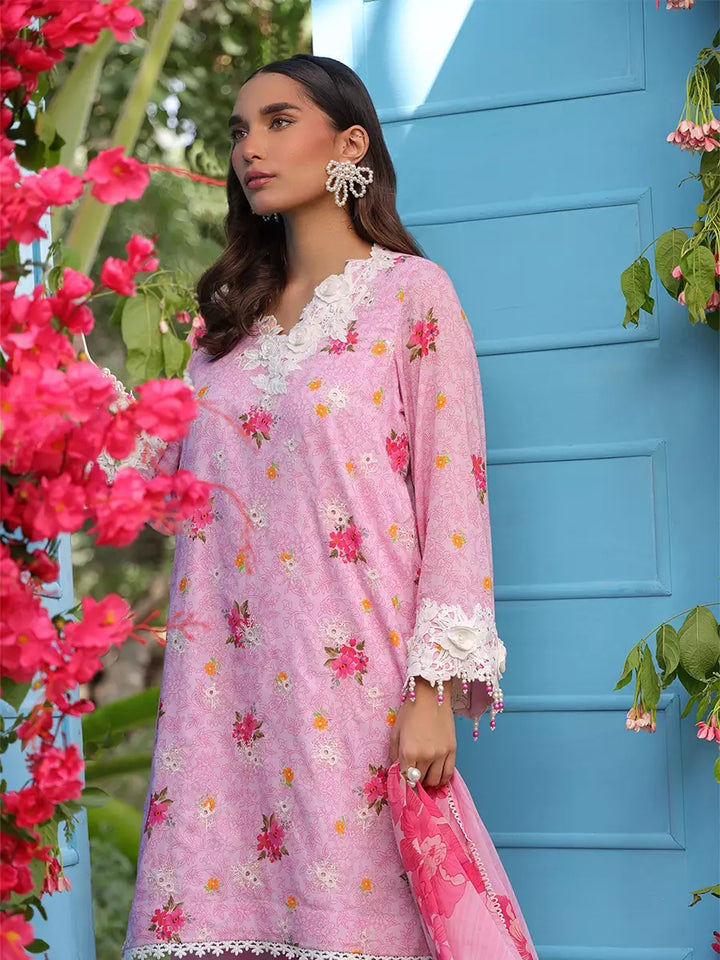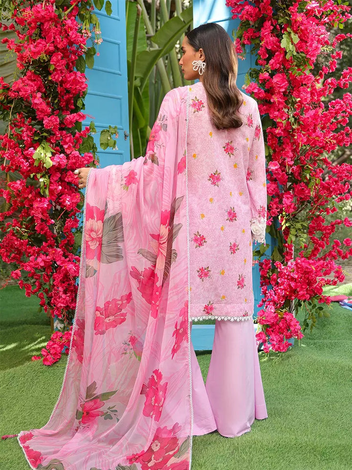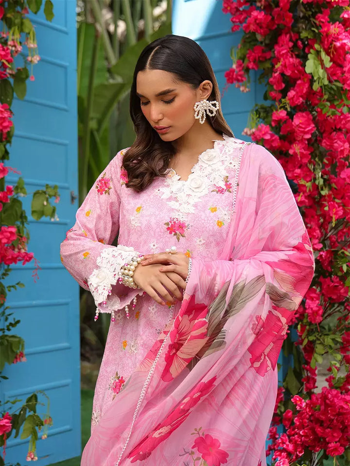 Elevate your look with this chic cambric printed and embroidered shirt, paired with a flowing printed chiffon dupatta. Complete the outfit with a perfectly dyed cambric trouser for a graceful finish