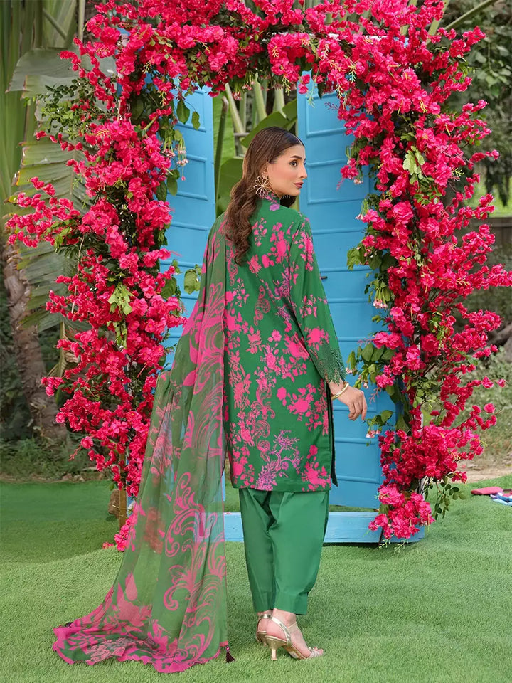 Elevate your look with this chic cambric printed and embroidered shirt, paired with a flowing printed chiffon dupatta. Complete the outfit with a perfectly dyed cambric trouser for a graceful finish