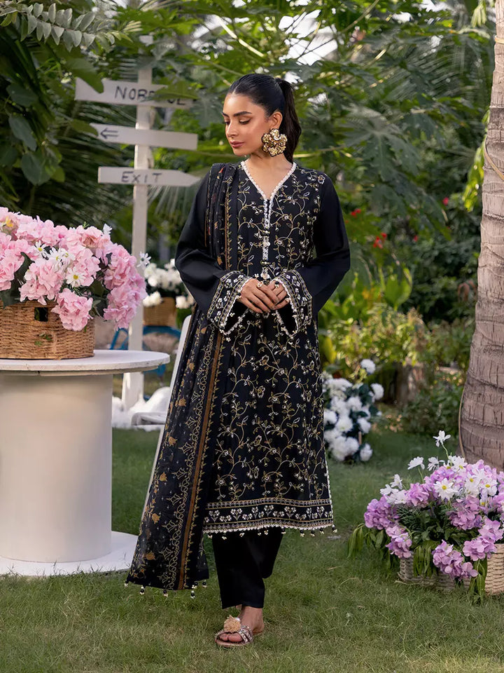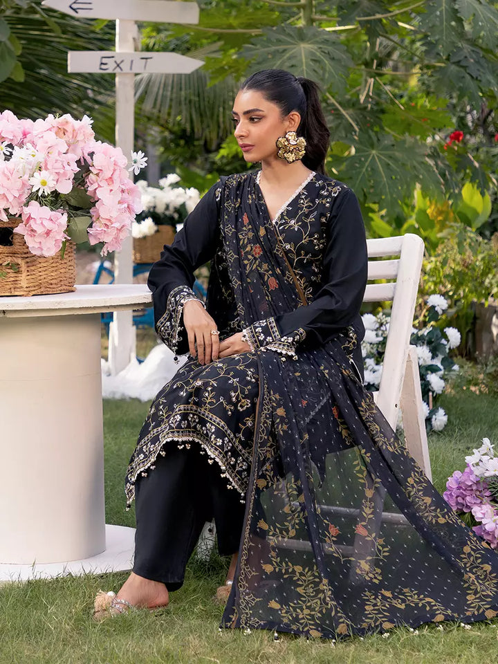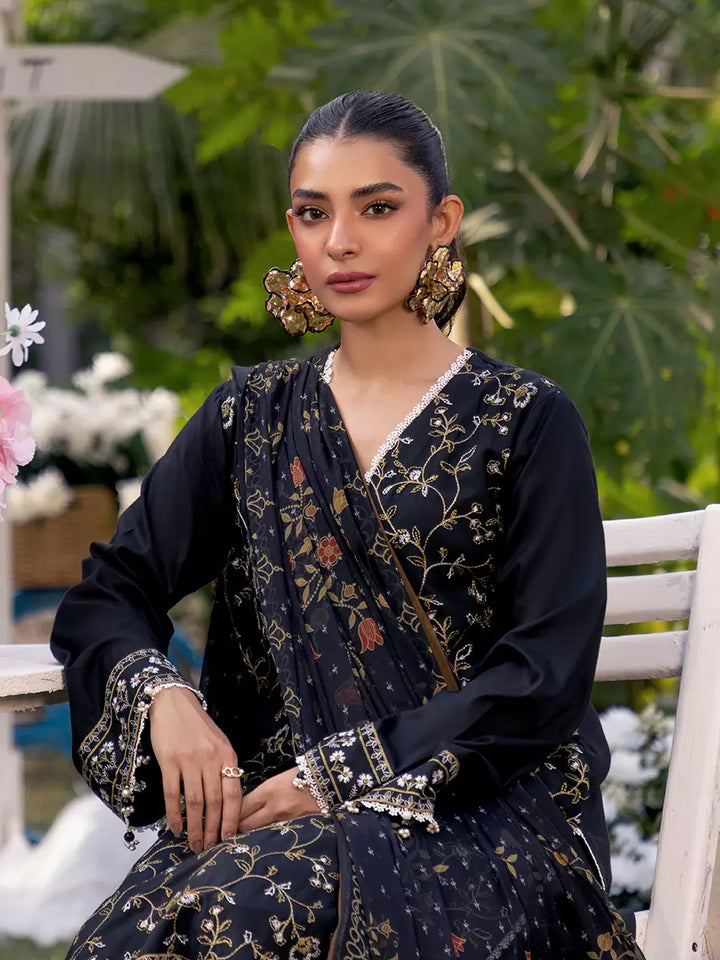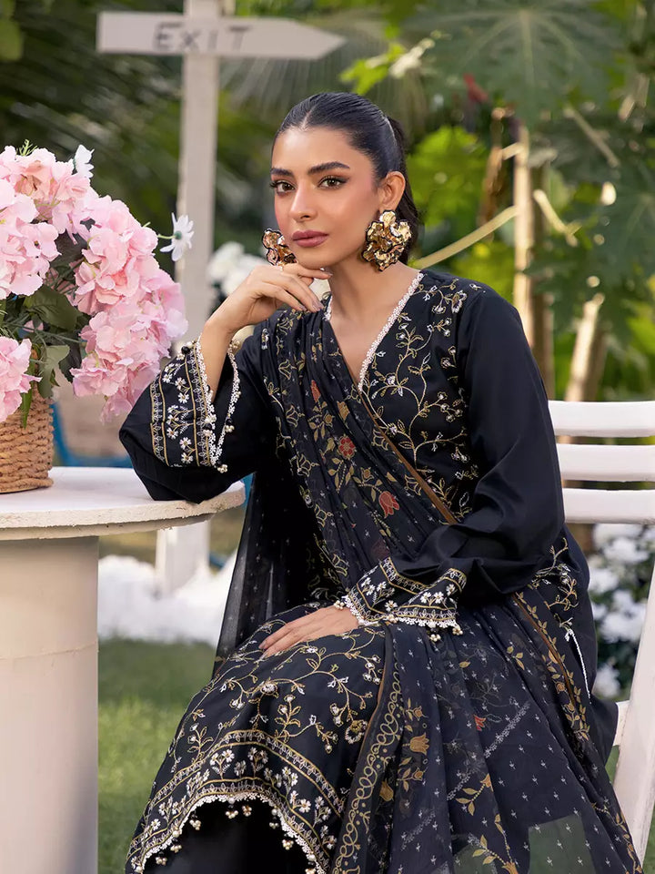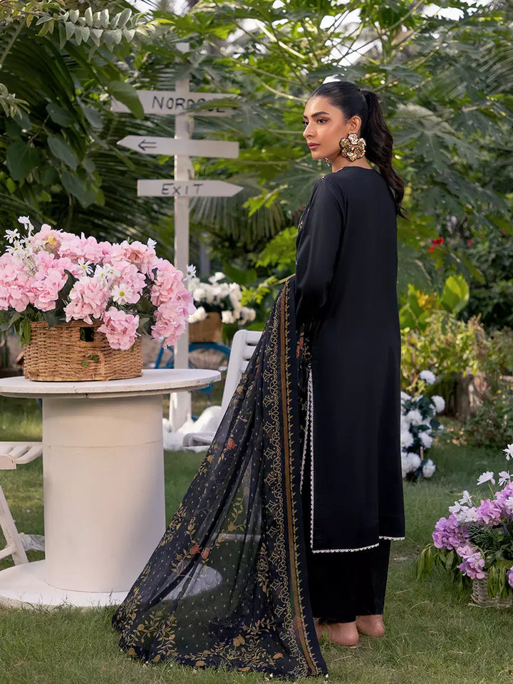 Make a statement with this gorgeous black 3-piece unstitched suit, featuring exquisite front embroidery and a stunning printed dupatta. Timeless elegance and sophistication at an affordable price
