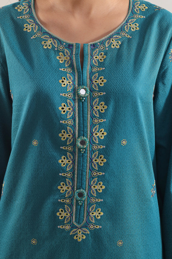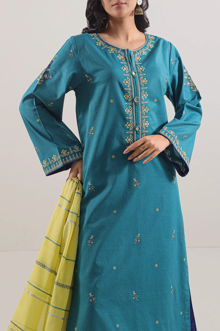 Elevate Your Wardrobe With This Luxury Pret Embroidered Cotton Jacquard 3-Piece Set By SAYA, Crafted From Premium Cotton Jacquard That Blends Structure With Breathable Comfort. The Stitched Shirt Boasts A Textured Weave And Intricate Embroidery, Paired With A Coordinated Jacquard Dupatta And A Ready-To-Wear Trouser For Polished Completeness. Perfect For Weddings, Festive Gatherings, Or Formal Occasions Where You Desire Elegance With Daily Wearability.