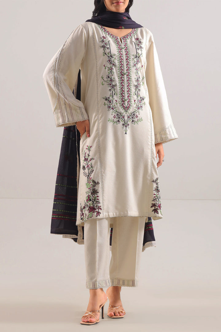 Luxury Pret Embroidered Cotton Jacquard Stitched 3 Piece
